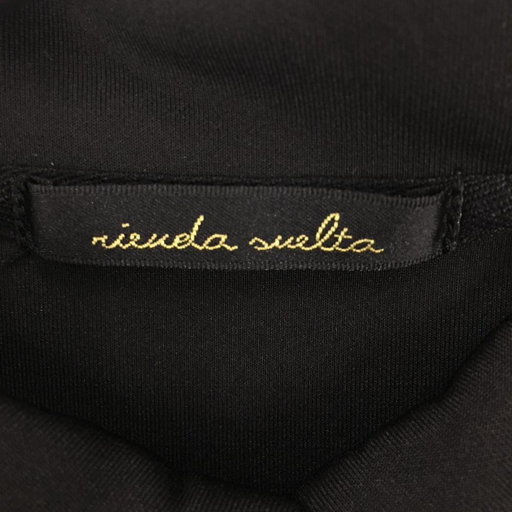 【美品】リエンダスエルタ 半袖ポロシャツ 黒 ロゴ刺しゅう ストレッチ レディース M ゴルフウェア rienda suelta