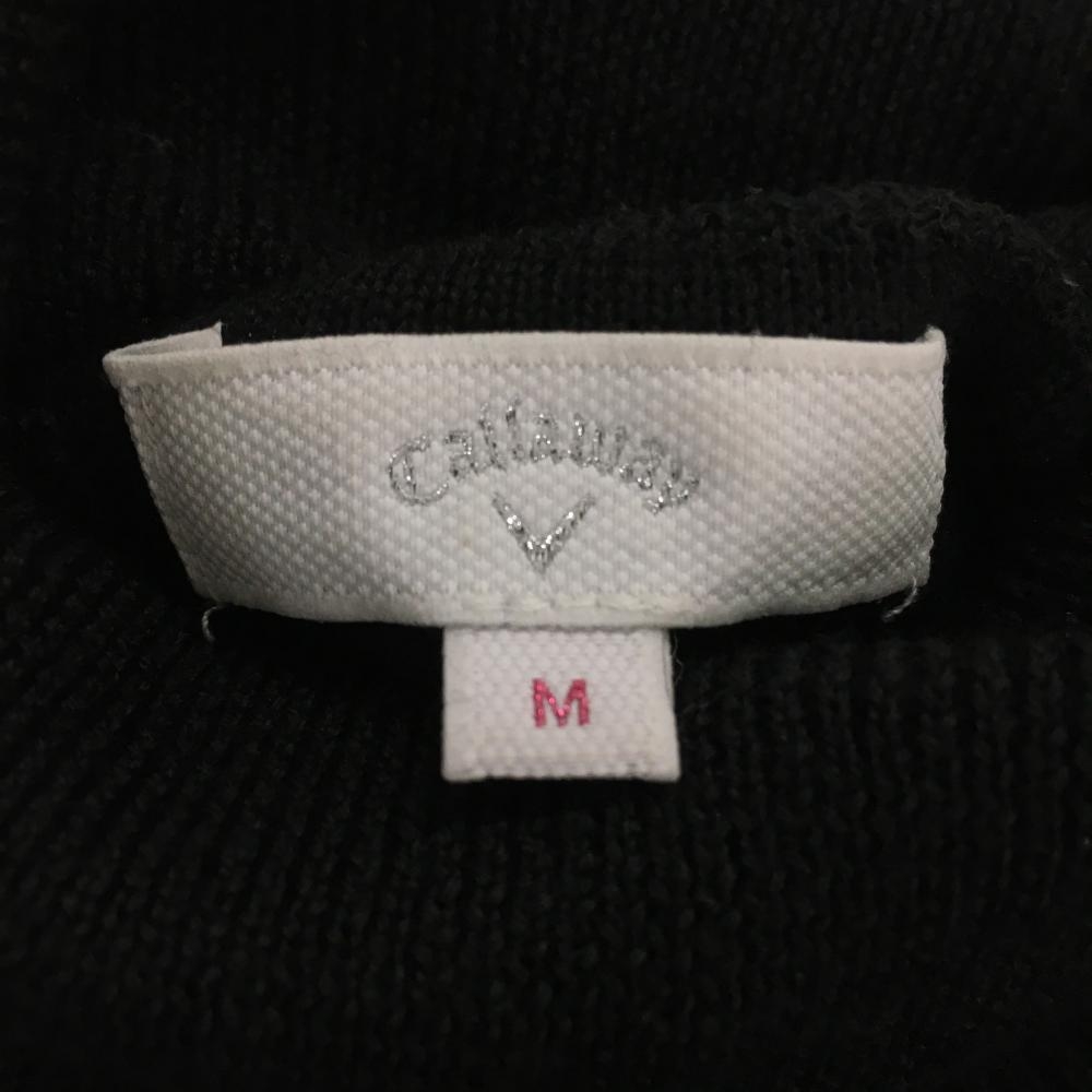 【超美品】キャロウェイ タートルネックセーター 黒×グレー ボーダー調 リブ ラインストーン レディース M ゴルフウェア Callaway