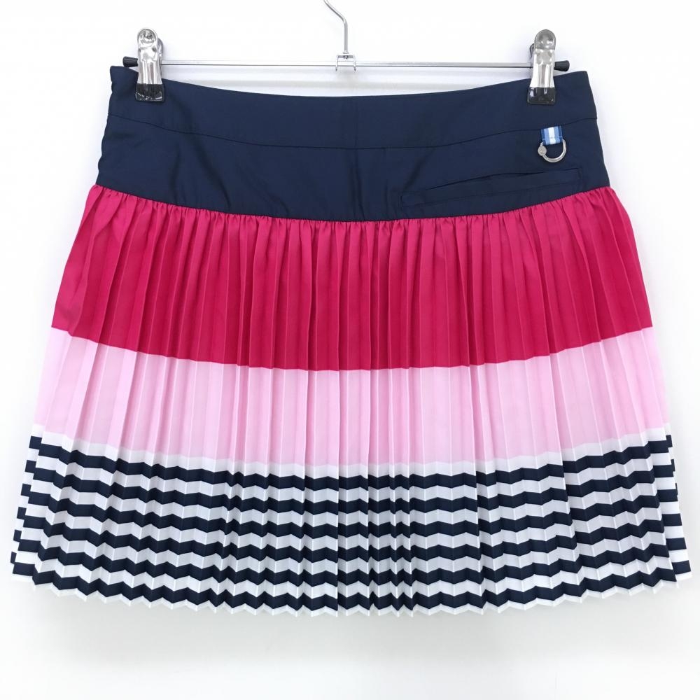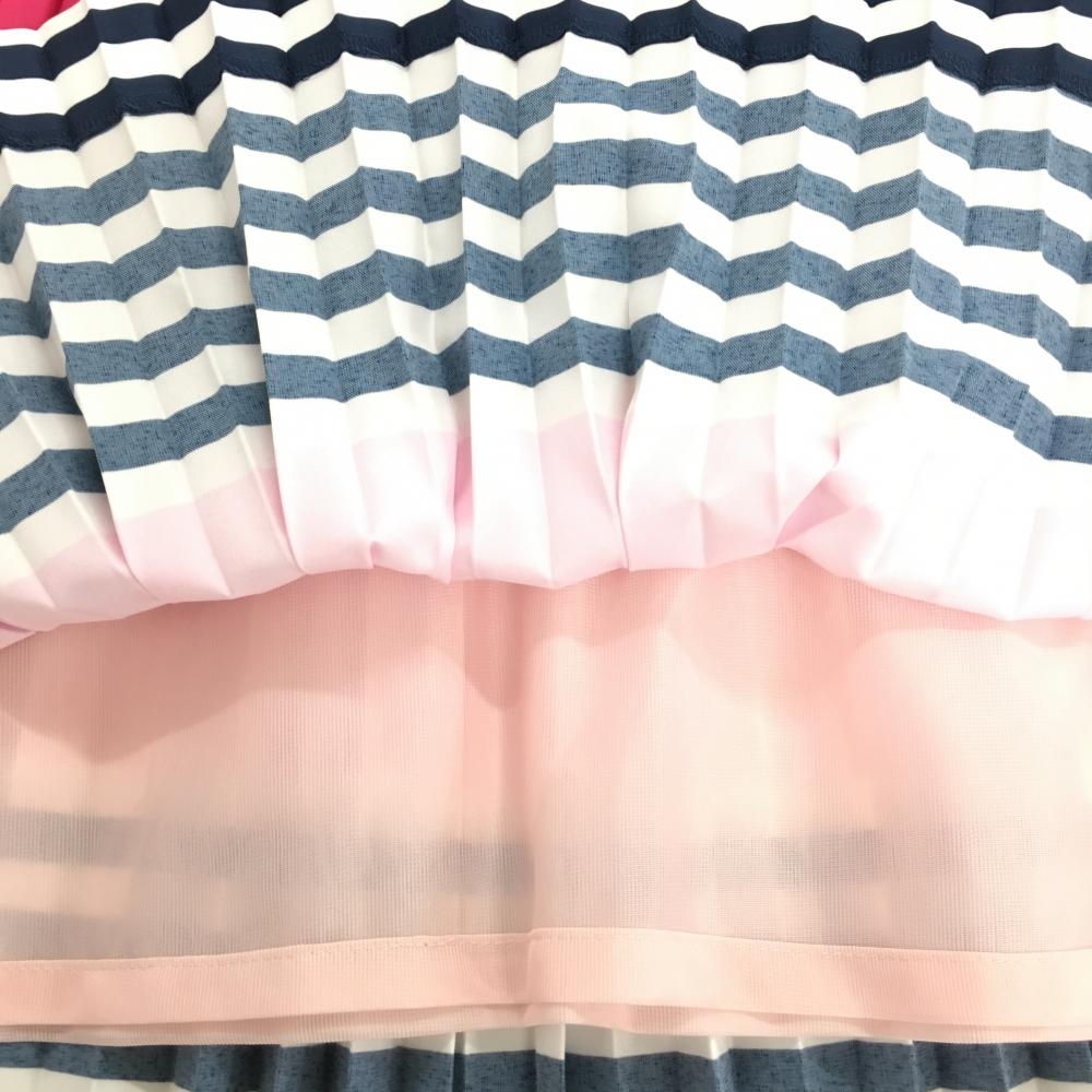 【新品】マンシングウェア プリーツスカート ピンク×ネイビー 裾ボーダー 裏地付 レディース 11 ゴルフウェア Munsingwear