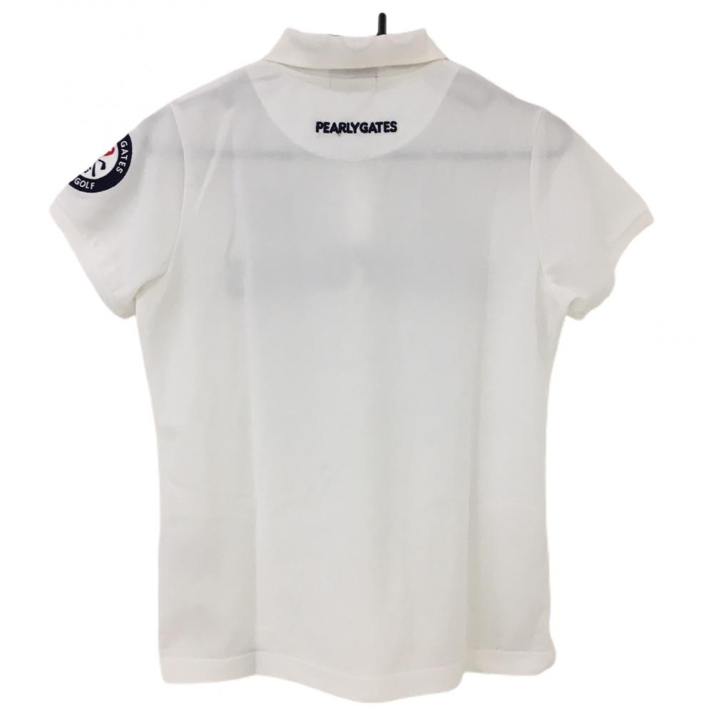 【美品】パーリーゲイツ 半袖ポロシャツ 白×ネイビー ニコちゃん スマイル 襟裏ニコ レディース 1 ゴルフウェア PEARLY GATES