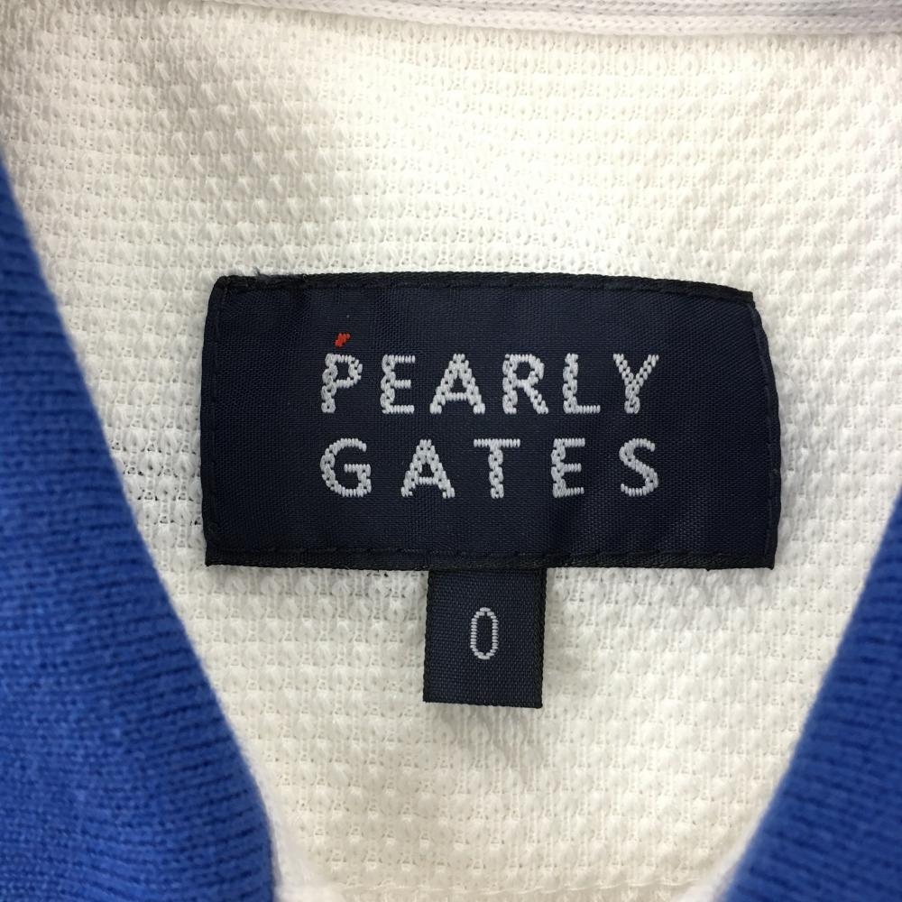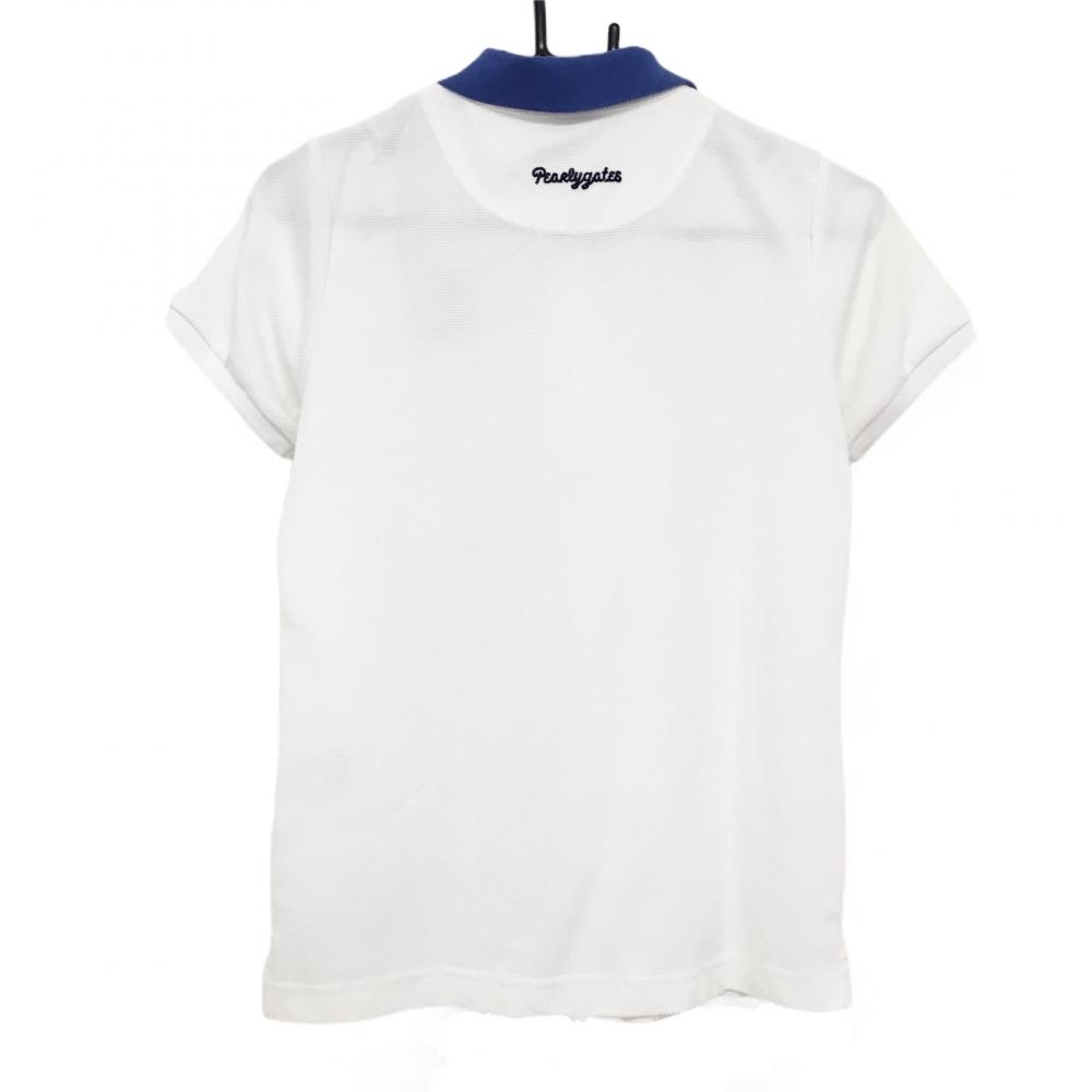 パーリーゲイツ 半袖ポロシャツ 白×ブルー ニコちゃん スマイル レディース 0(S) ゴルフウェア PEARLY GATES