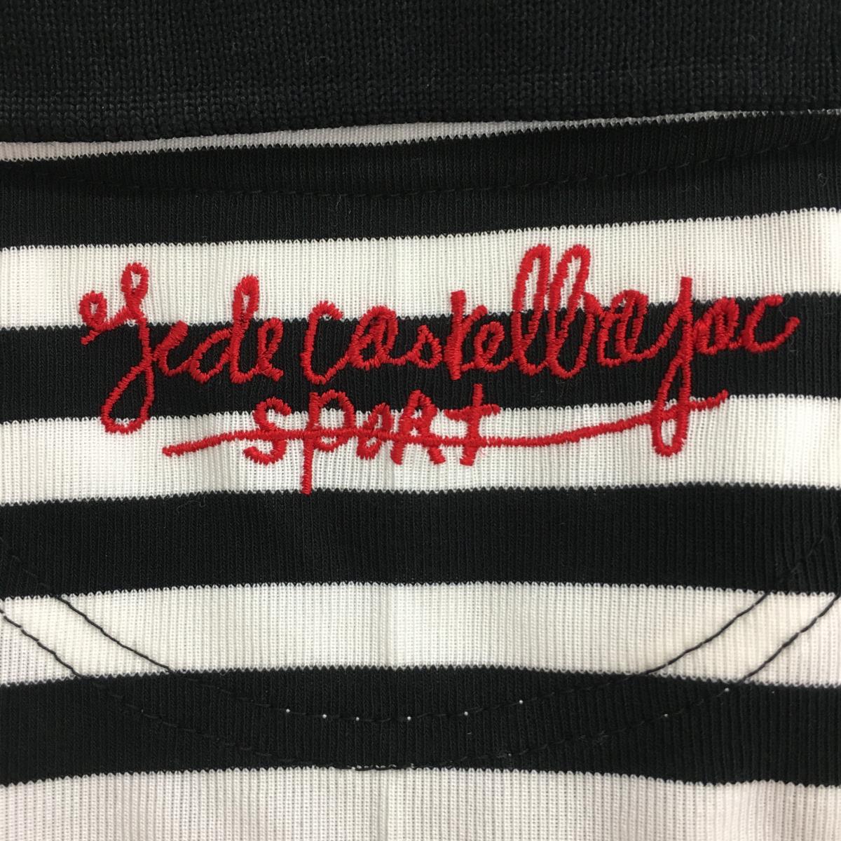 【美品】カステルバジャック 半袖ポロシャツ 白×黒 ボーダー柄 クマ刺しゅう レディース 1(S) ゴルフウェア CASTELBAJAC