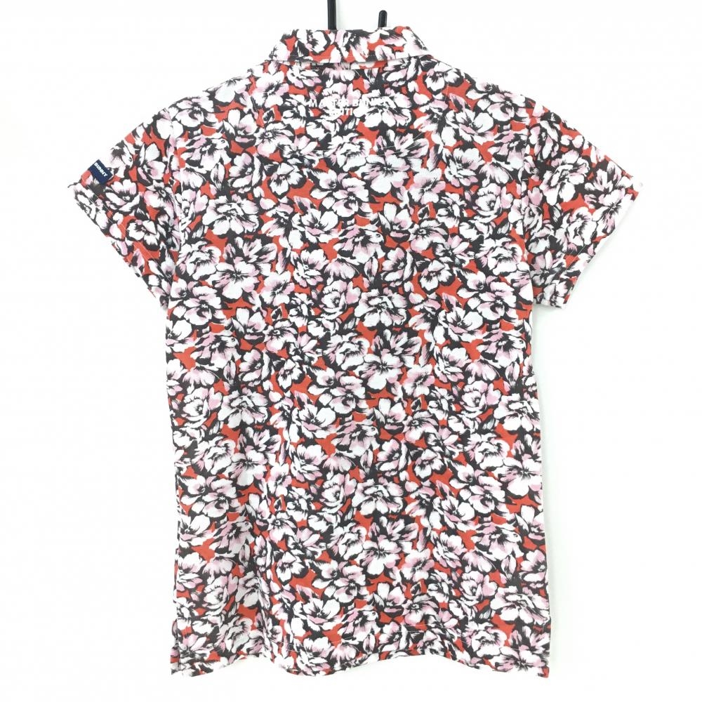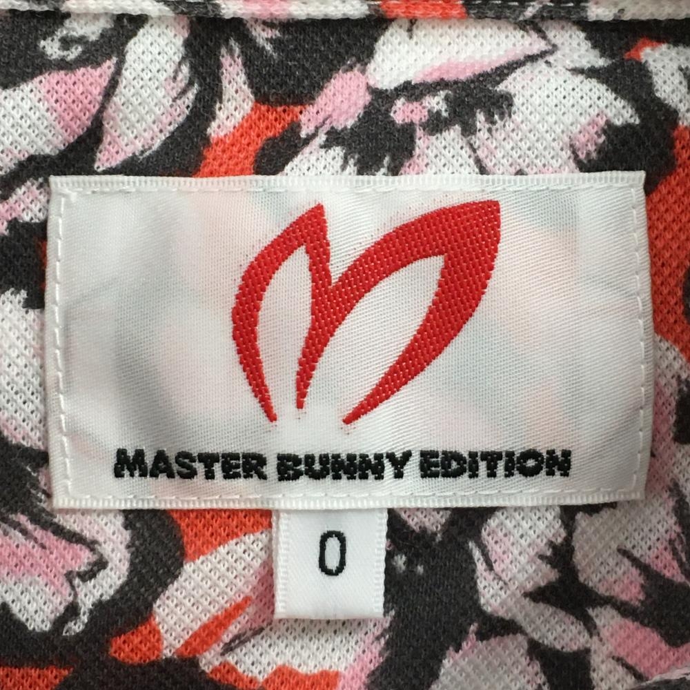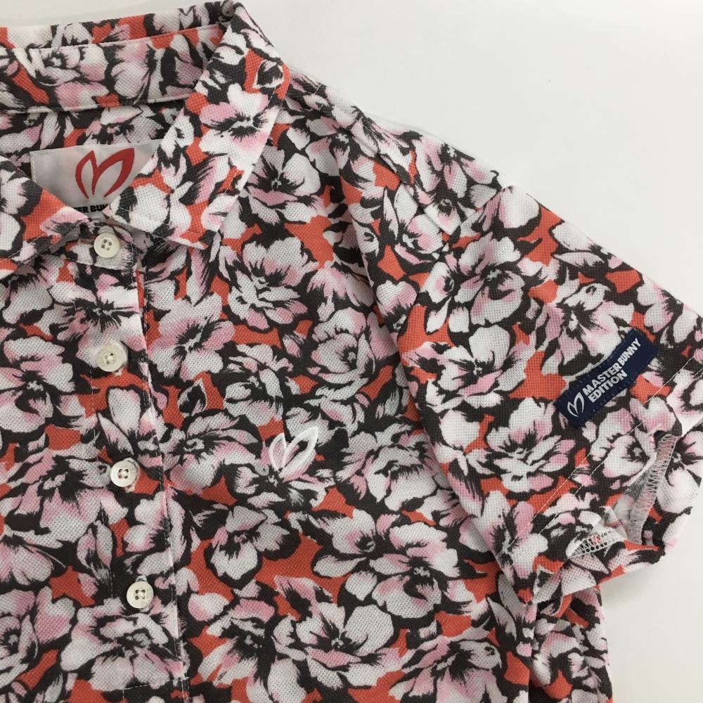 【超美品】マスターバニー 半袖ポロシャツ オレンジ×ピンク 花柄 レディース 0(S) ゴルフウェア MASTER BUNNY EDITION
