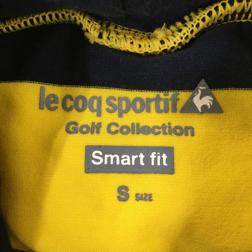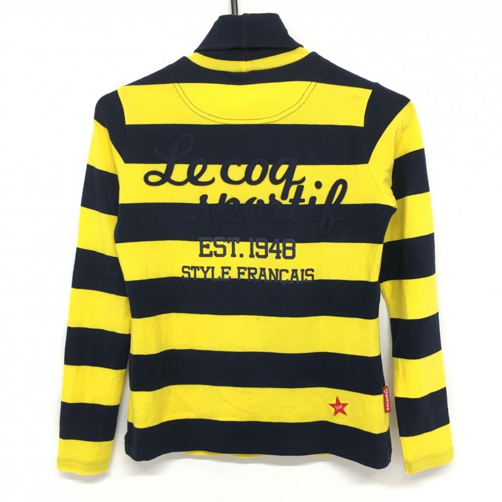 ルコック 長袖ハイネックシャツ ネイビー×イエロー ボーダー タートルネック ロゴ刺しゅう レディース S ゴルフウェア le coq sportif