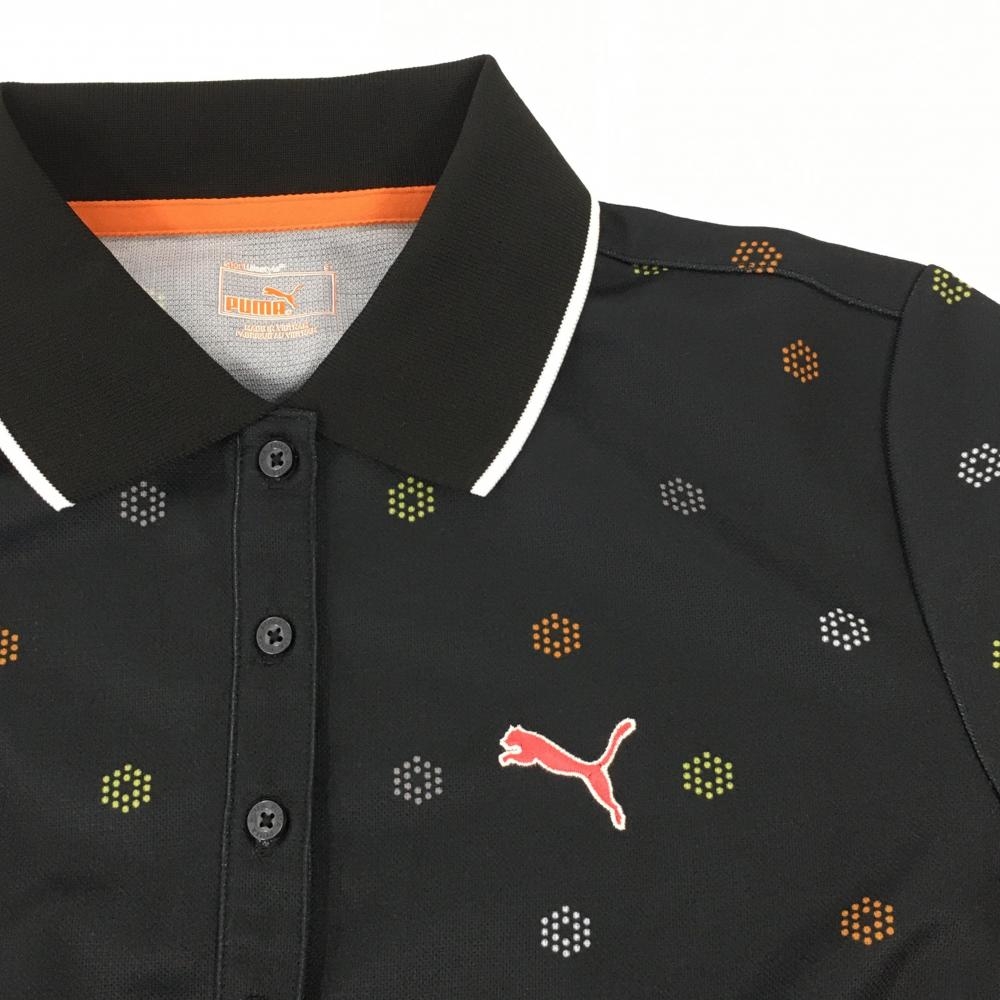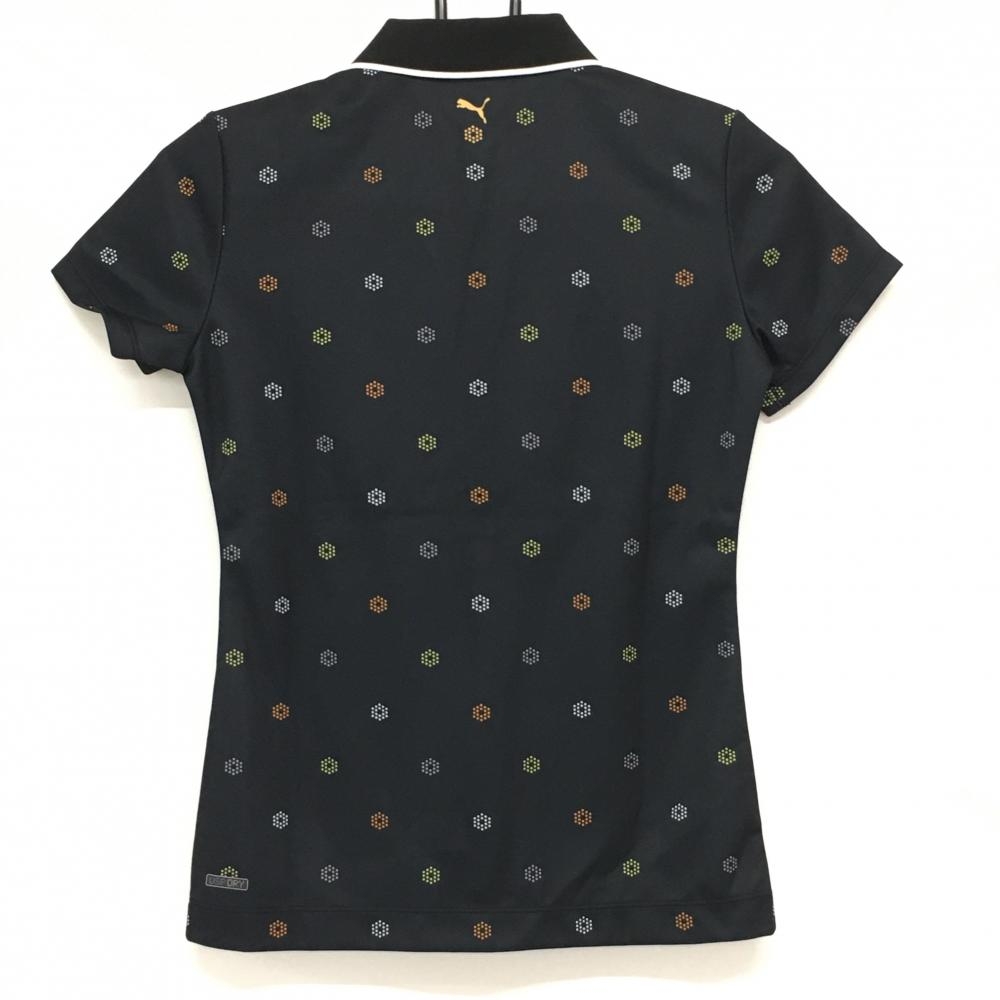 【超美品】プーマ 半袖ポロシャツ 黒×マルチ 総柄 DRY レディース S ゴルフウェア PUMA