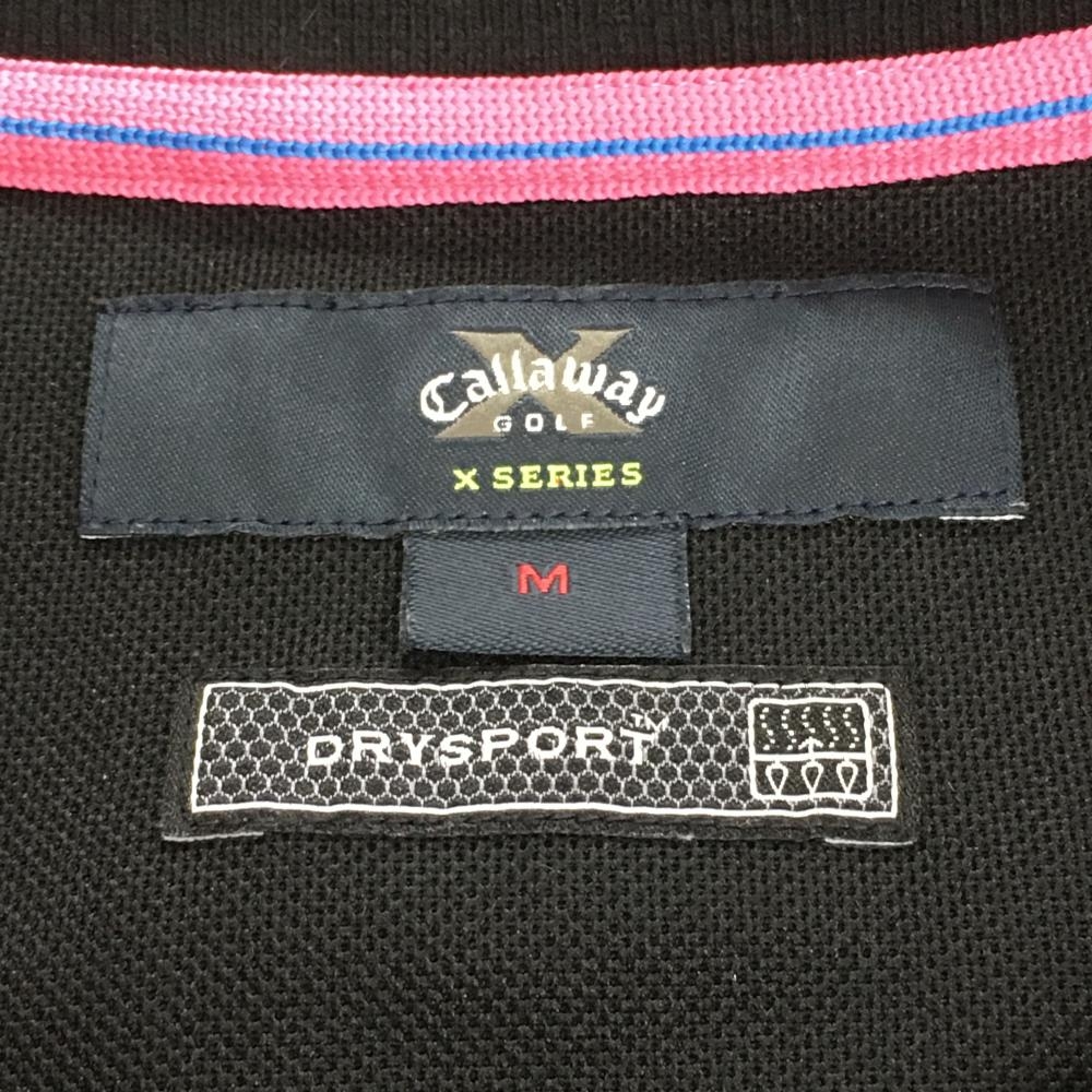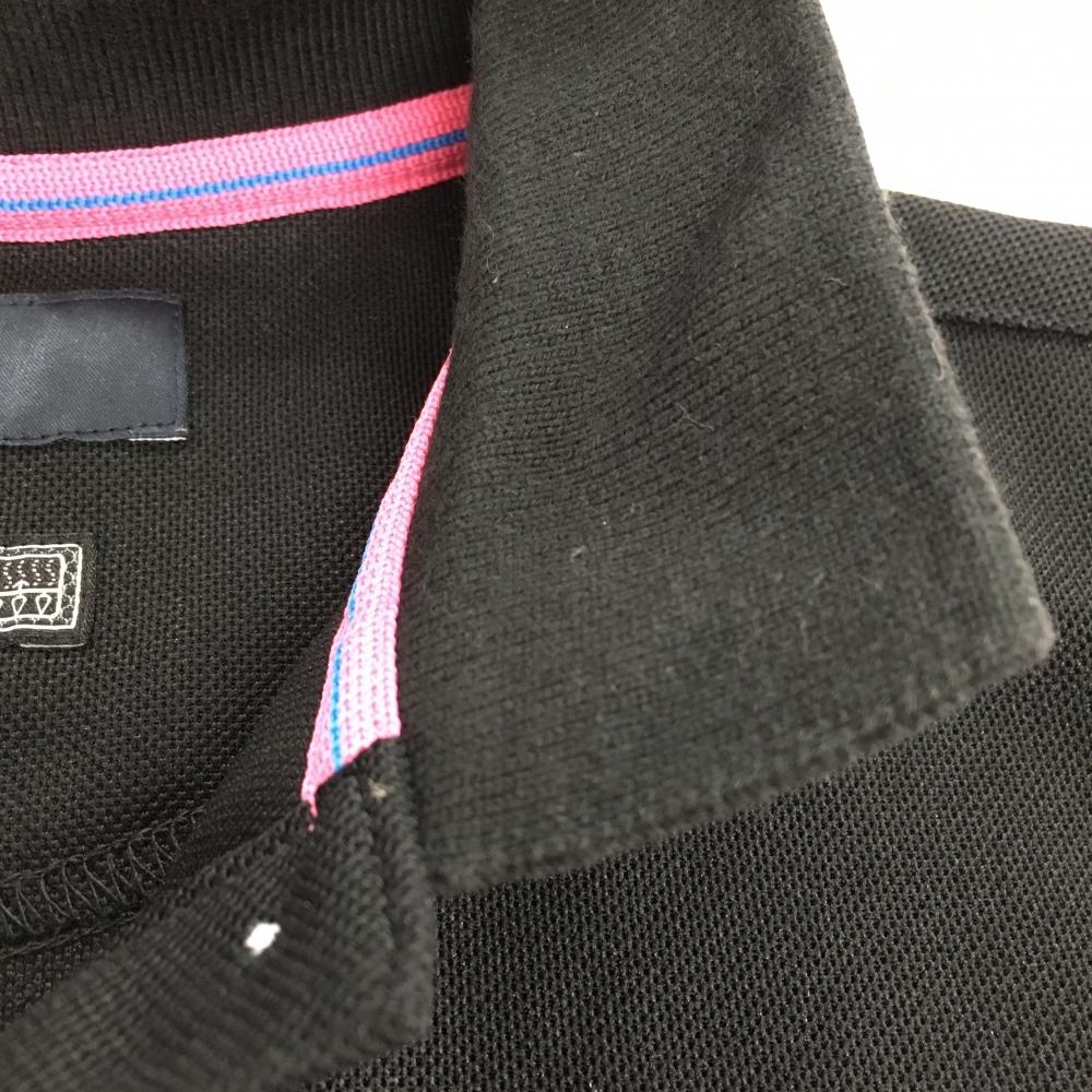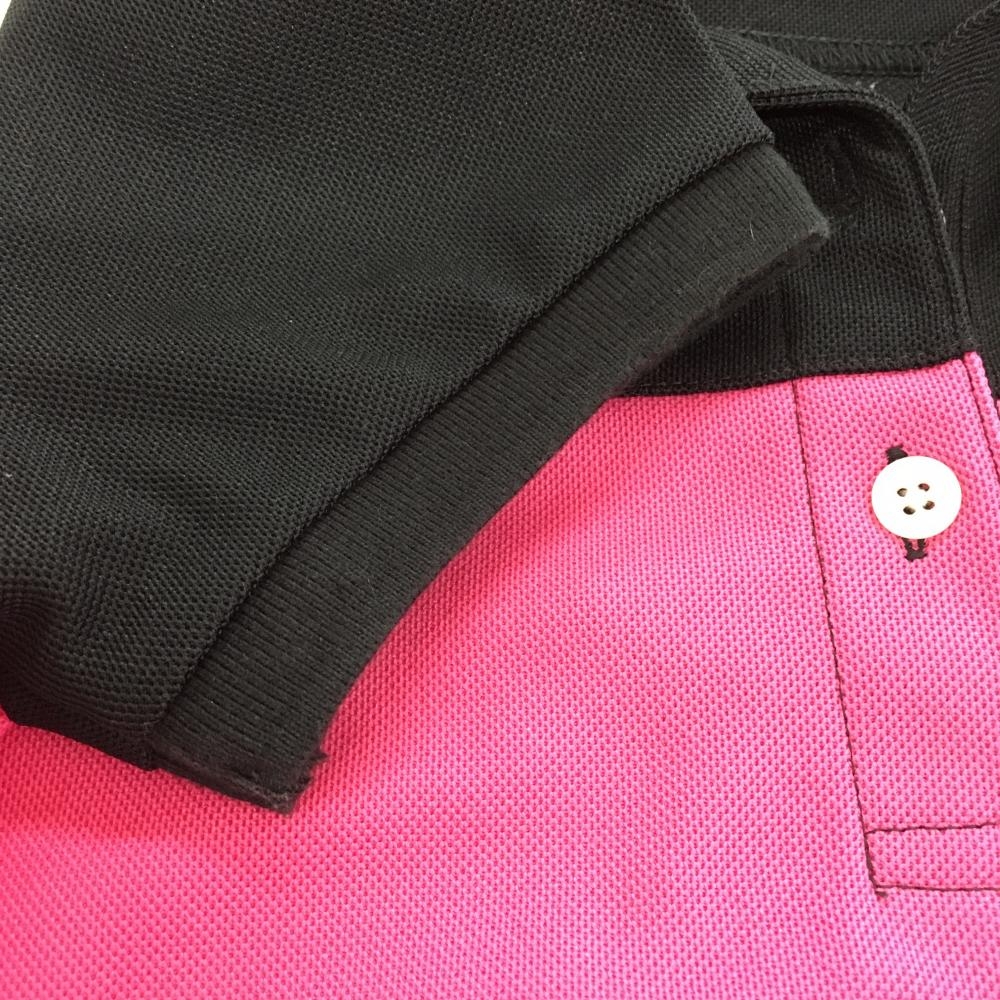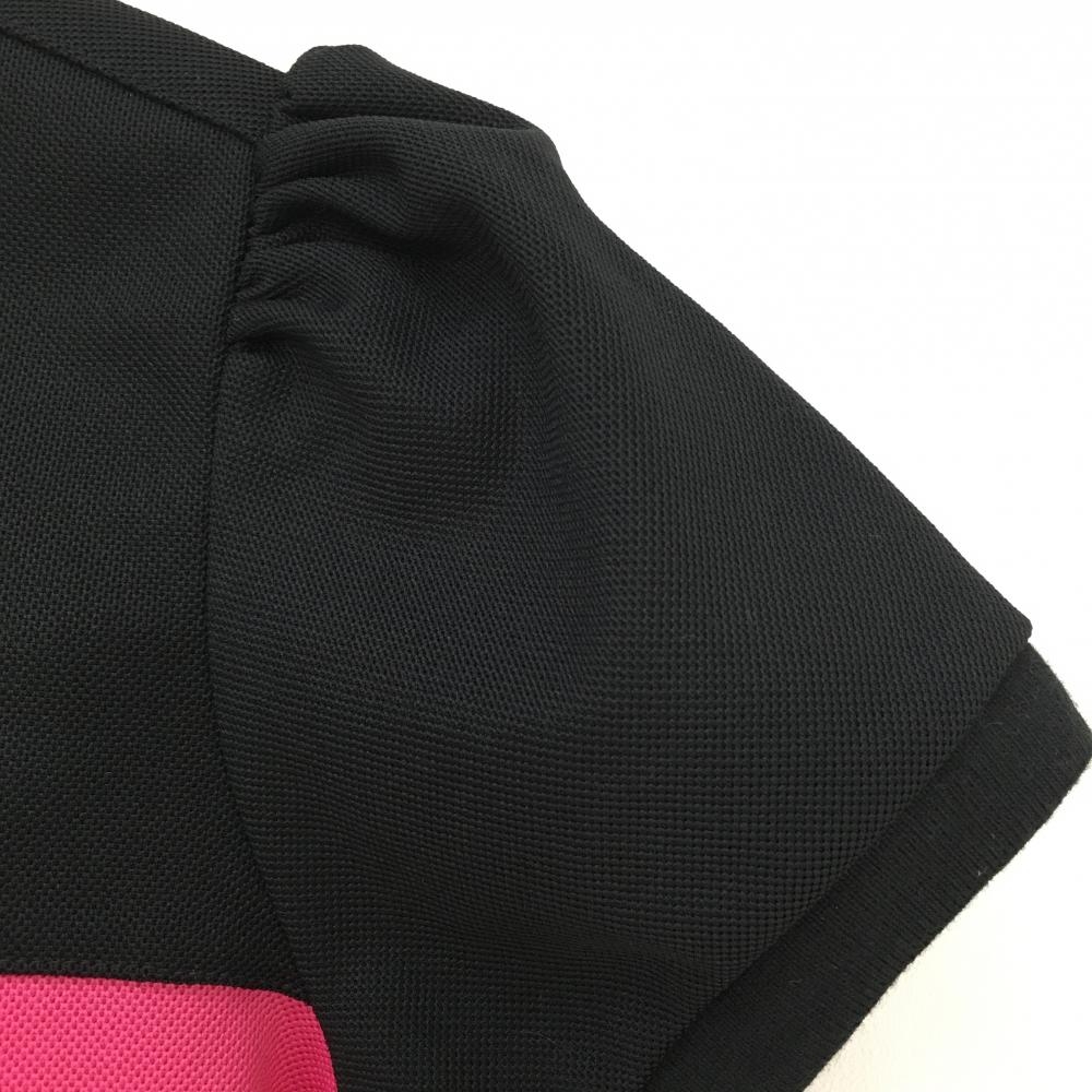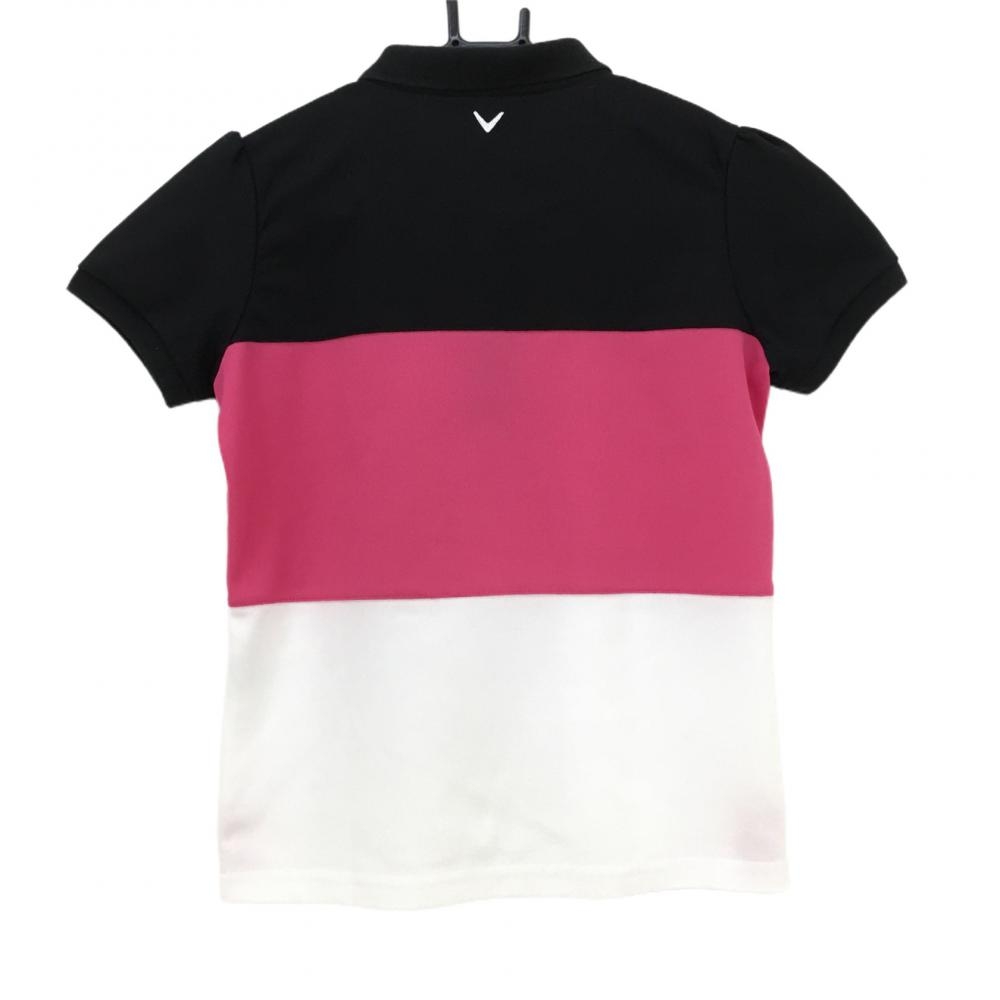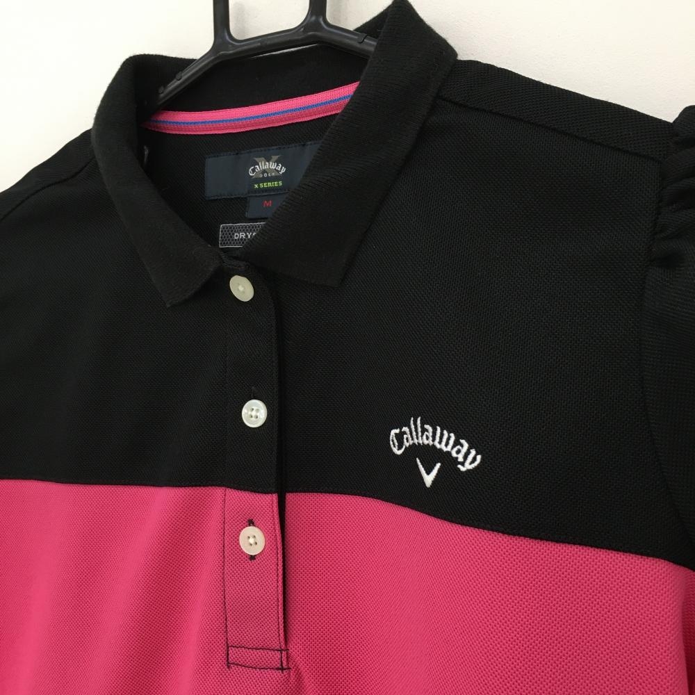 キャロウェイ 半袖ポロシャツ 黒×ピンク ロゴ刺しゅう パフスリーブ レディース M ゴルフウェア Callaway