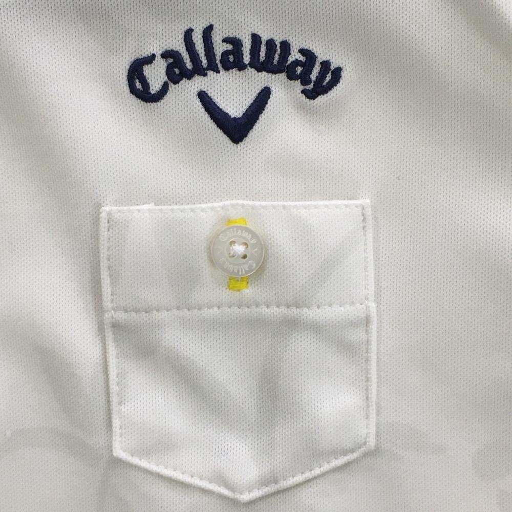 キャロウェイ 半袖ポロシャツ 白×ネイビー ハイビスカス柄 ロゴ刺しゅう レディース S ゴルフウェア Callaway