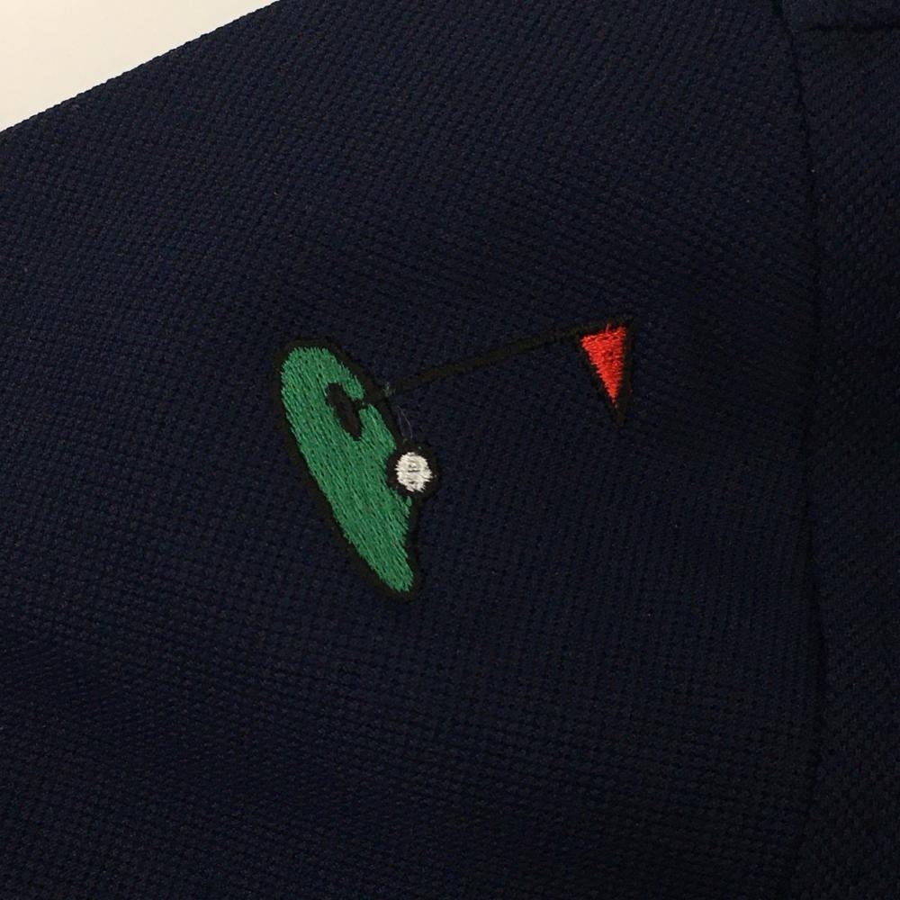 【超美品】ルコック 半袖ポロシャツ ネイビー ゴルフ柄 ロゴ刺しゅう レディース S ゴルフウェア le coq sportif