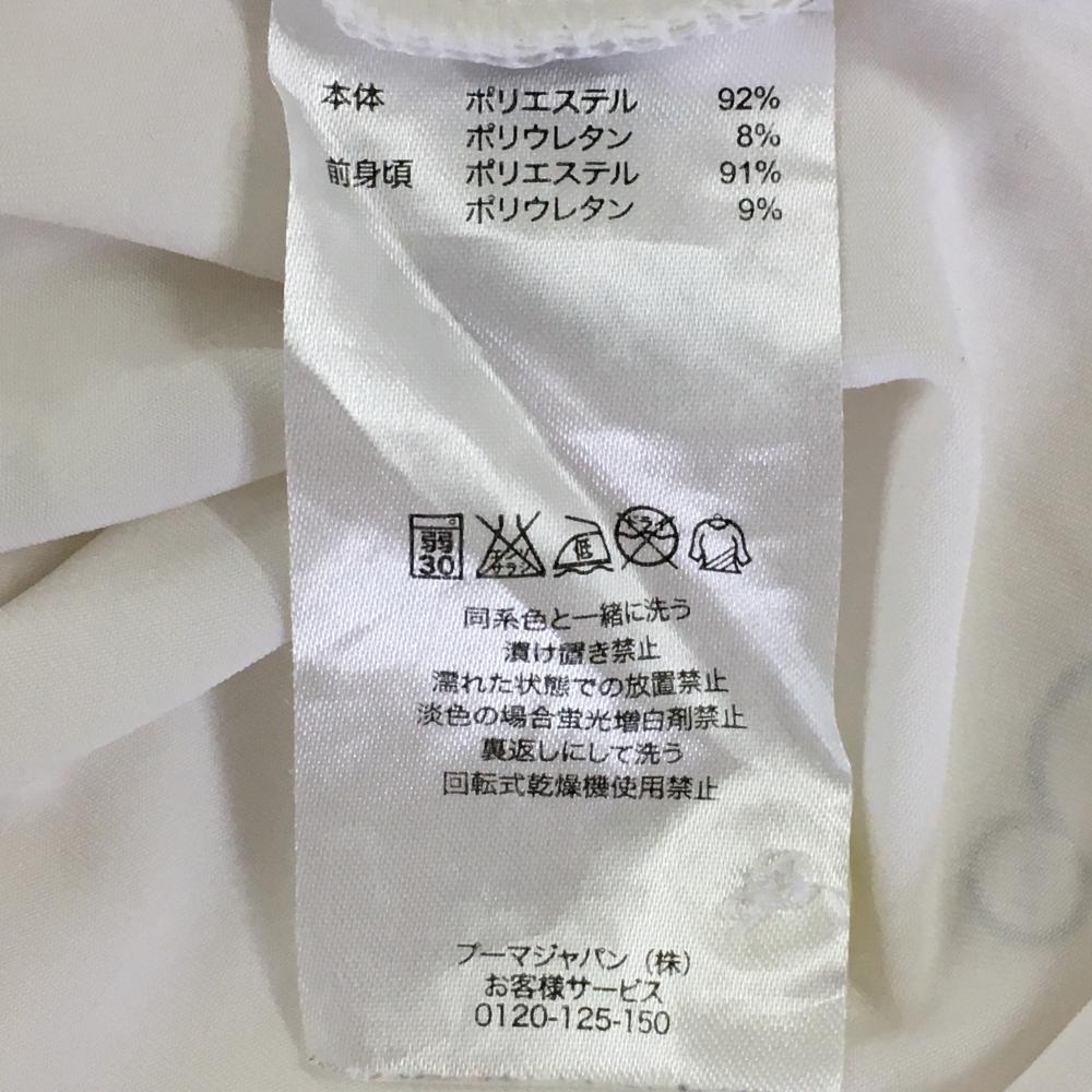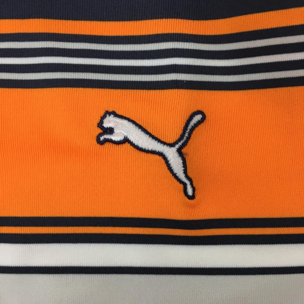 【美品】プーマ 半袖ポロシャツ 白×オレンジ 一部ボーダー ロゴ刺しゅう メンズ M ゴルフウェア PUMA