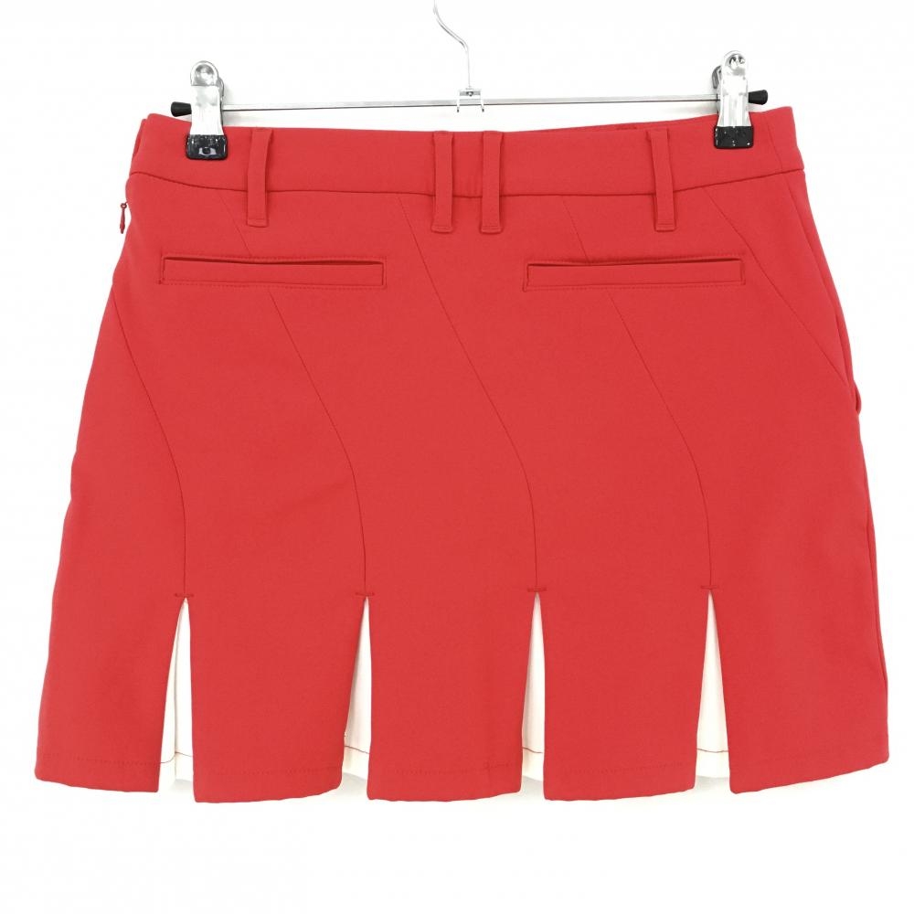 【美品】デサントゴルフ スカート レッド×白 裾プリーツ 裏微起毛 中田英寿 レディース 67/L ゴルフウェア 2022年モデル DESCENTE