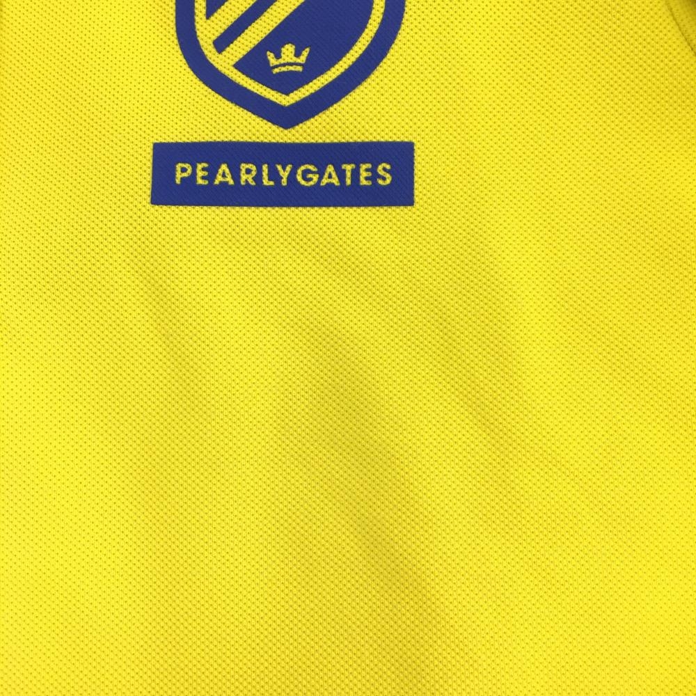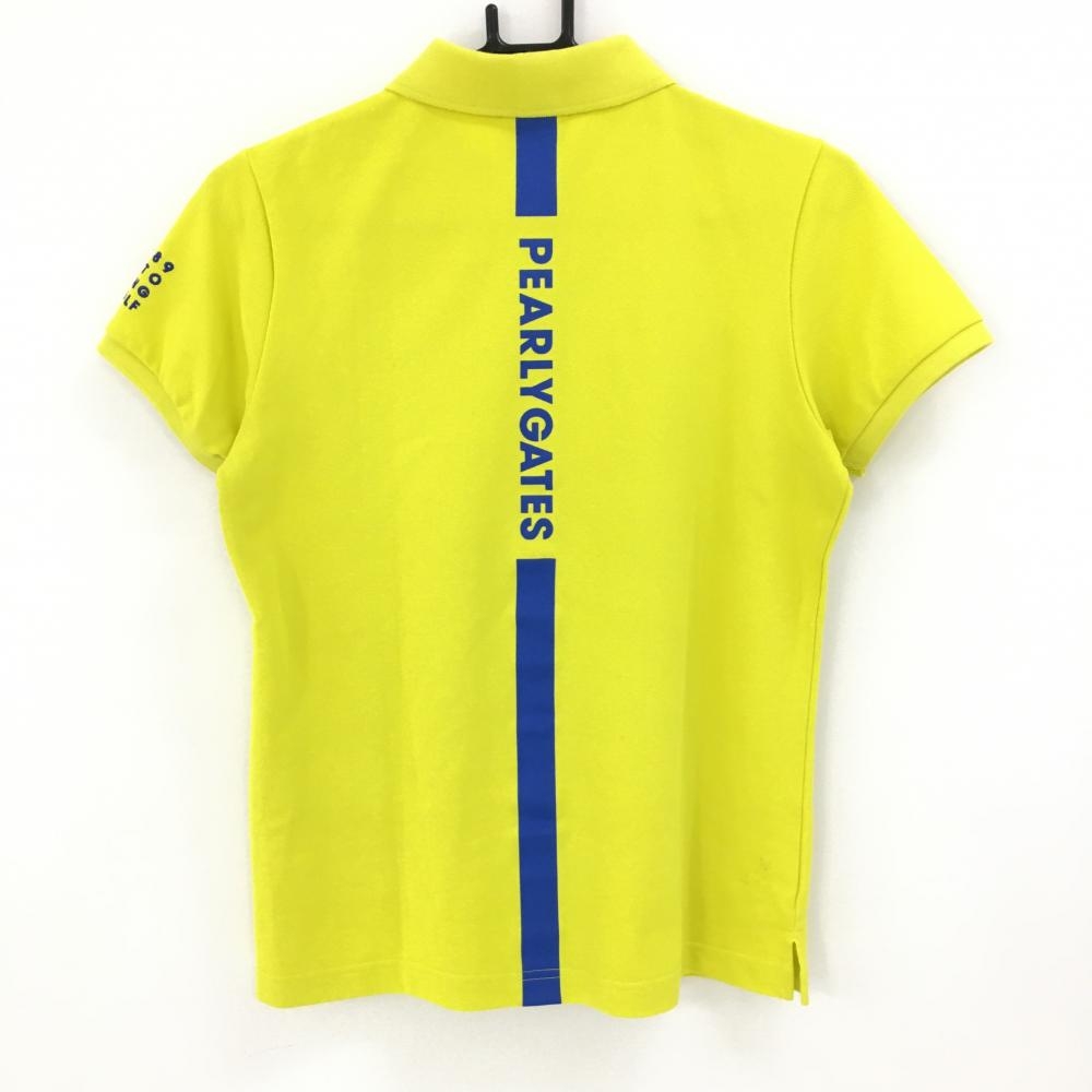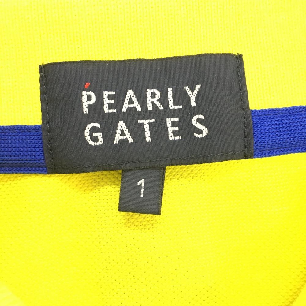 【美品】パーリーゲイツ 半袖ポロシャツ イエロー×ブルー ロゴプリント レディース 1(M) ゴルフウェア 2021年モデル PEARLY GATES