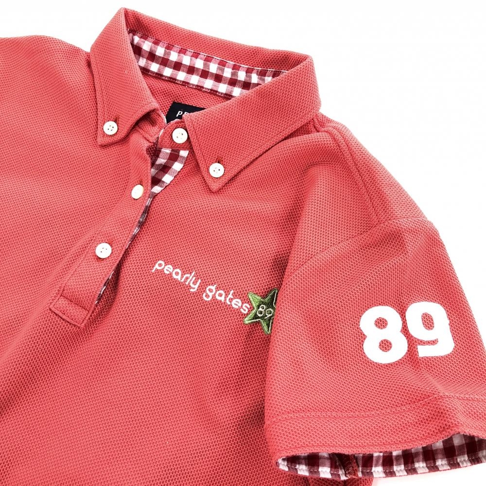 パーリーゲイツ 半袖ポロシャツ ピンクレッド×白 ロゴ刺しゅう 星 レディース 1(M) ゴルフウェア PEARLY GATES