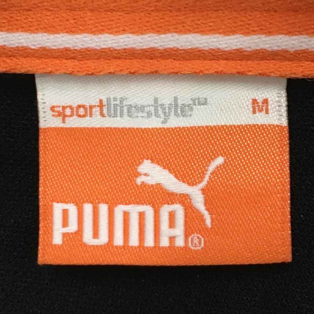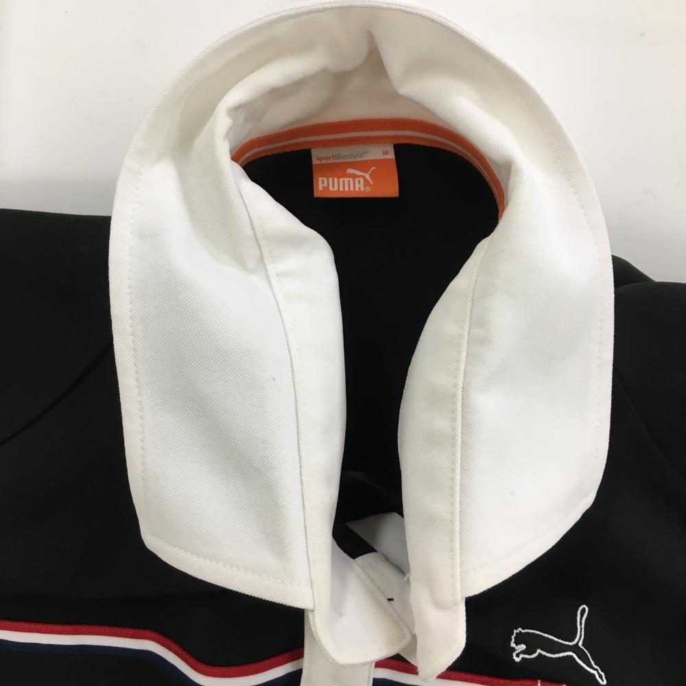 プーマ 半袖ポロシャツ 黒×白 トリコロールライン DRY 胸ポケット メンズ M ゴルフウェア PUMA