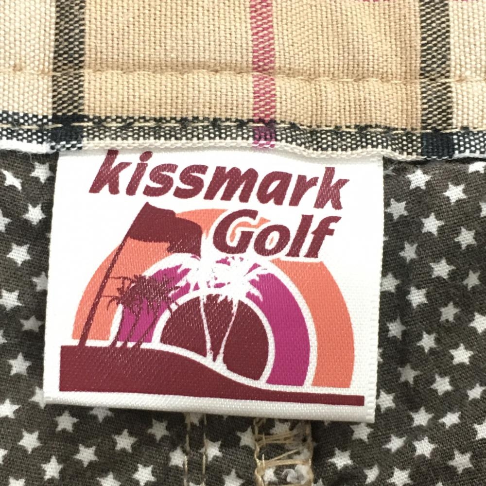 【美品】キスマーク パンツ ベージュ×黒 チェック 複数ポケット レディース 5 ゴルフウェア kissmark
