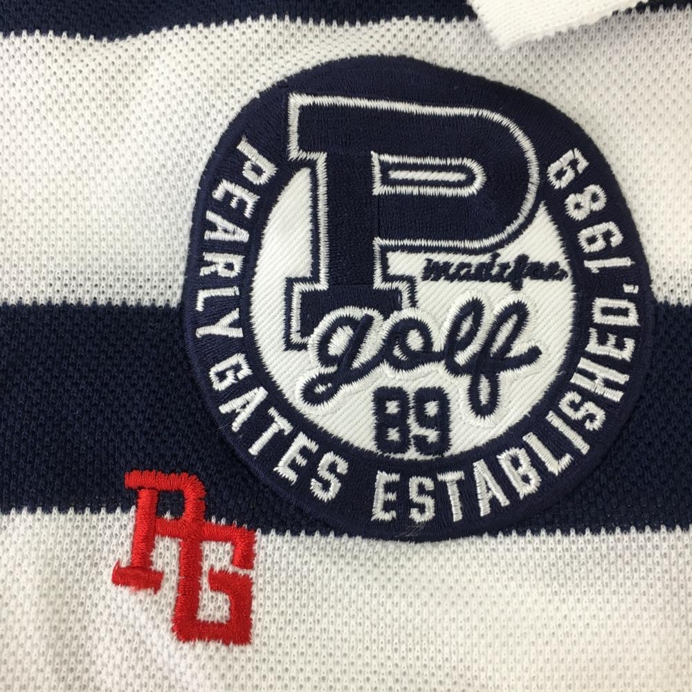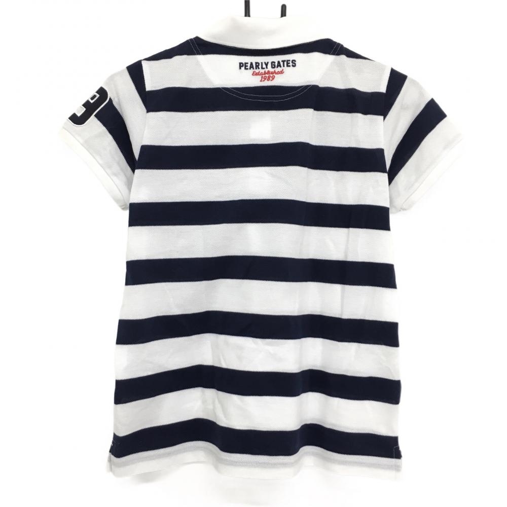 パーリーゲイツ 半袖ポロシャツ 白×ネイビー ボーダー 日本製 レディース 0(S) ゴルフウェア PEARLY GATES