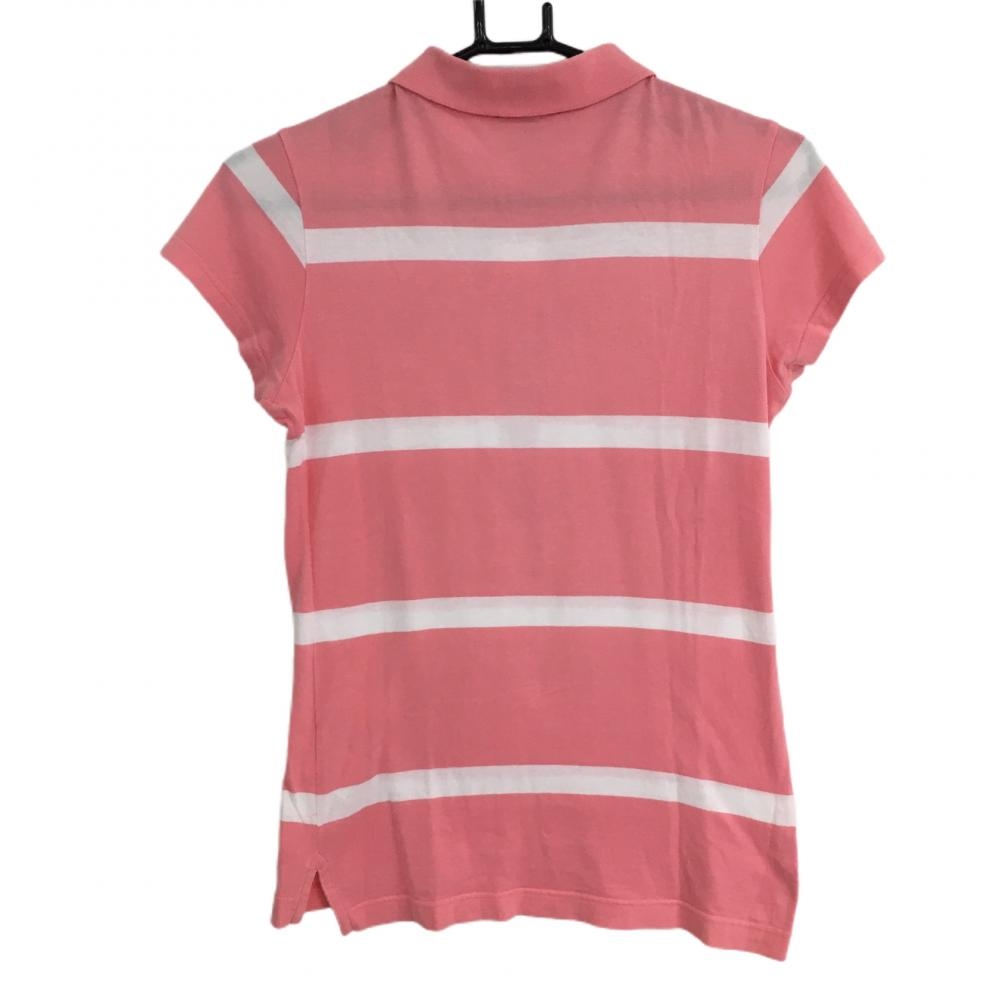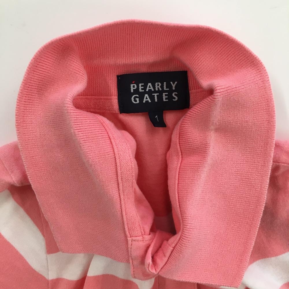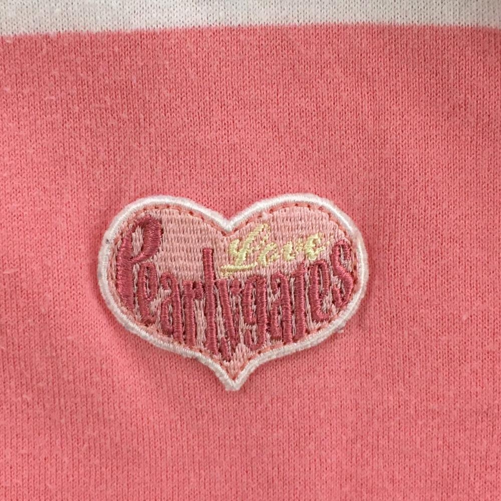 パーリーゲイツ 半袖ポロシャツ ピンク×白 ボーダー ハートワッペン レディース 1(M) ゴルフウェア PEARLY GATES