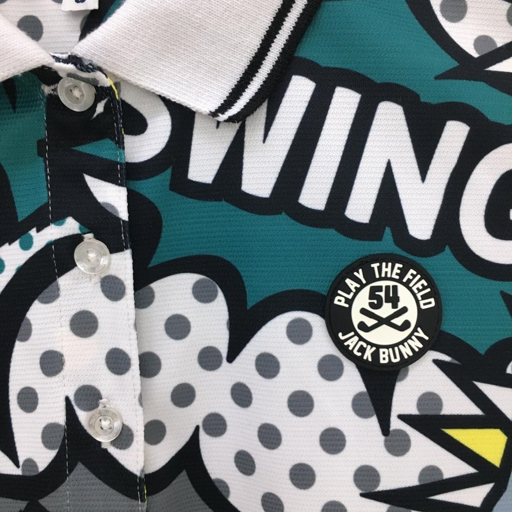 【美品】ジャックバニー 半袖ポロシャツ 白×グリーン×イエロー アメコミ柄 シリコンワッペン レディース 0(S) ゴルフウェア Jack Bunny