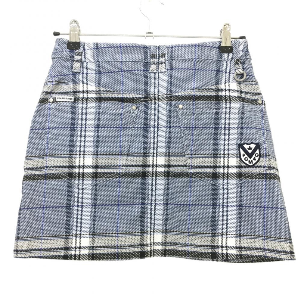 【超美品】パーリーゲイツ スカート ネイビー×白 チェック 前ボタン レディース 00(XS) ゴルフウェア PEARLY GATES