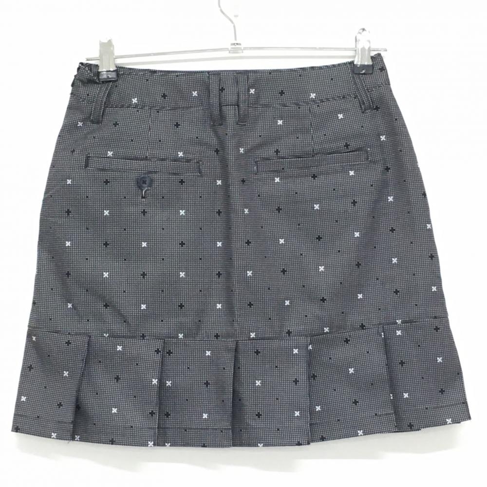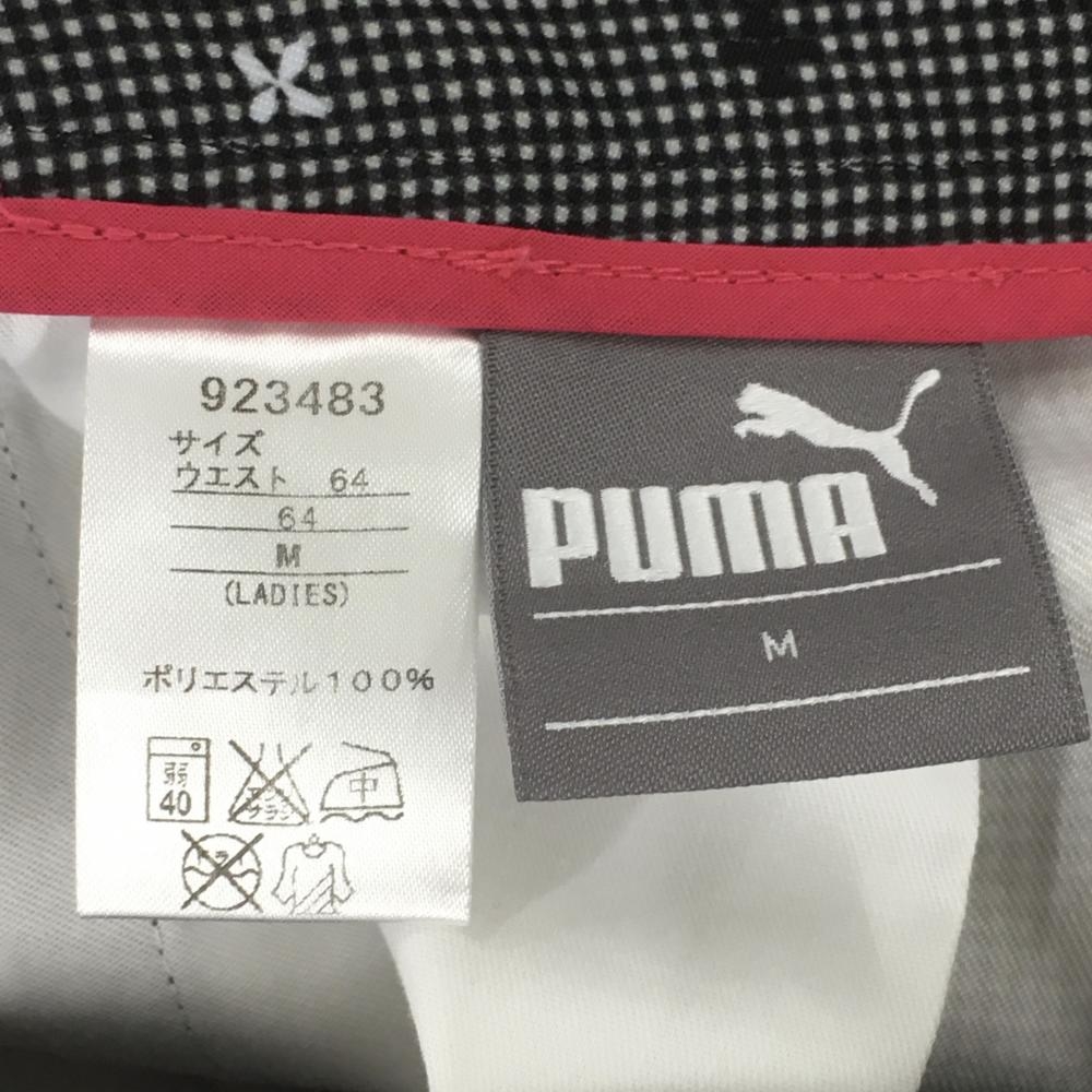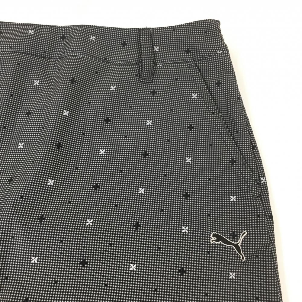 【超美品】プーマ スカート 黒×白 チェック 総柄 裾プリーツ ロゴ刺しゅう レディース M ゴルフウェア PUMA