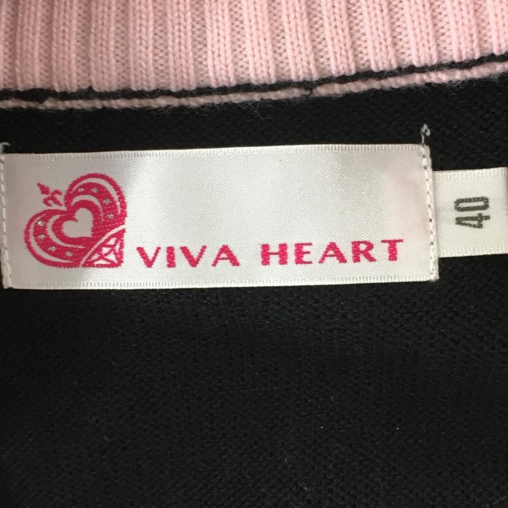 ビバハート 半袖ニットブルゾン 黒×ピンク アーガイル柄 ウール混 レディース 40(M) ゴルフウェア VIVA HEART