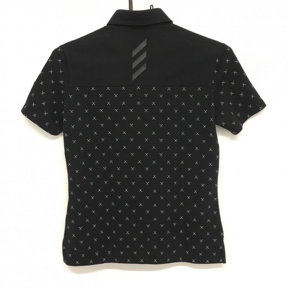 アディダス 半袖ポロシャツ 黒×白 ゴルフクラブ総柄 ボタンダウン レディース S ゴルフウェア adidas