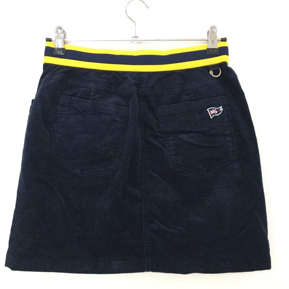 【超美品】マンシングウェア スカート ネイビー×イエロー コーデュロイ ロゴ刺しゅう レディース M ゴルフウェア Munsingwear