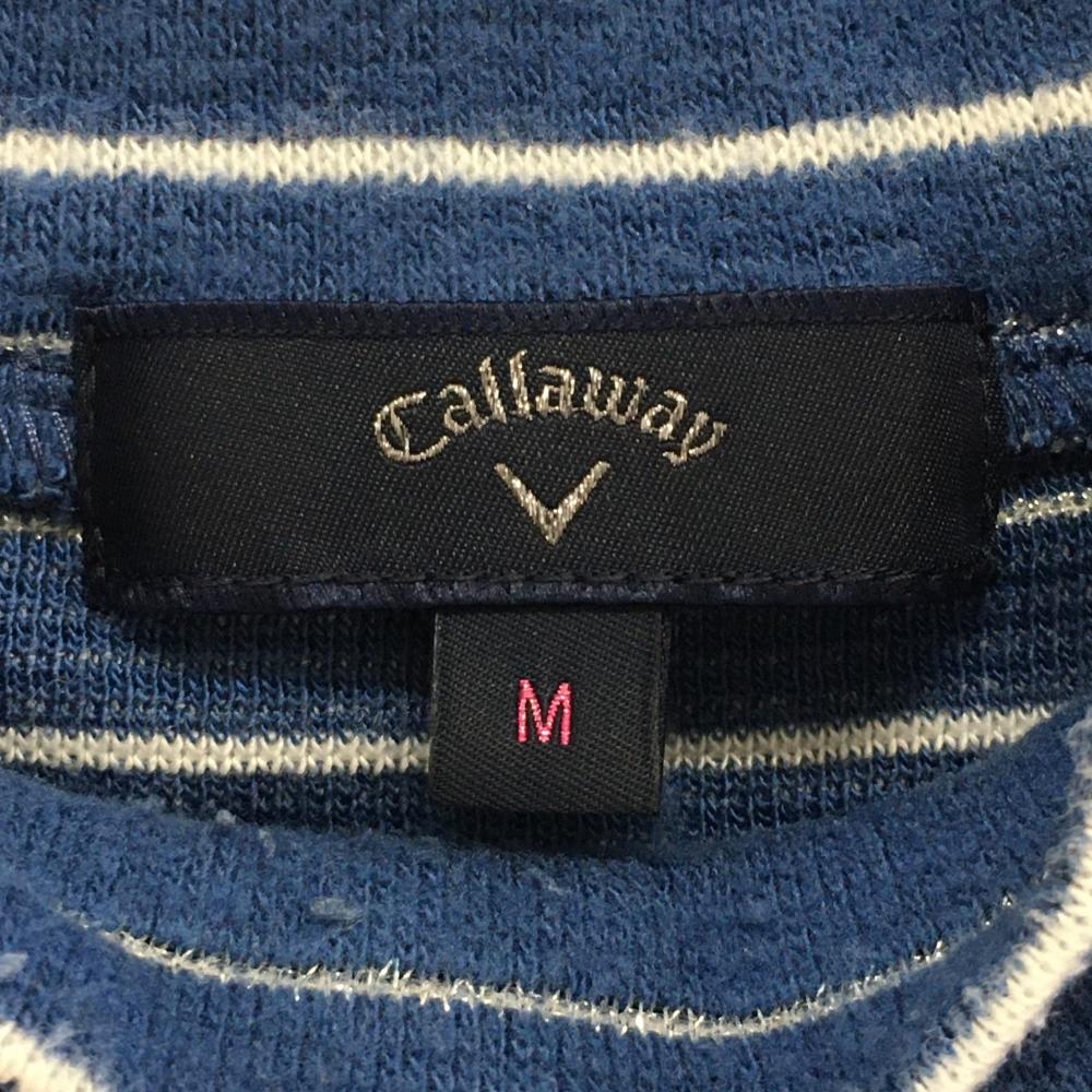 キャロウェイ 長袖ハイネックシャツ ネイビー×白 ボーダー 表微起毛 ラメ糸 レディース M ゴルフウェア Callaway