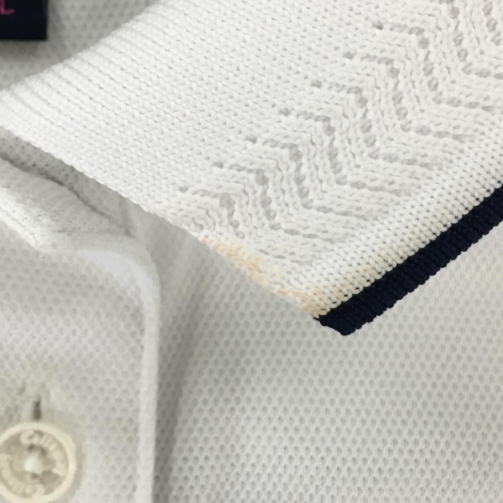 キャロウェイ 半袖ポロシャツ 白×ネイビー ロゴ刺しゅうピンク レディース LL ゴルフウェア Callaway