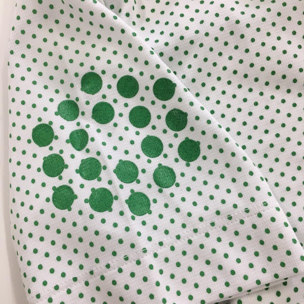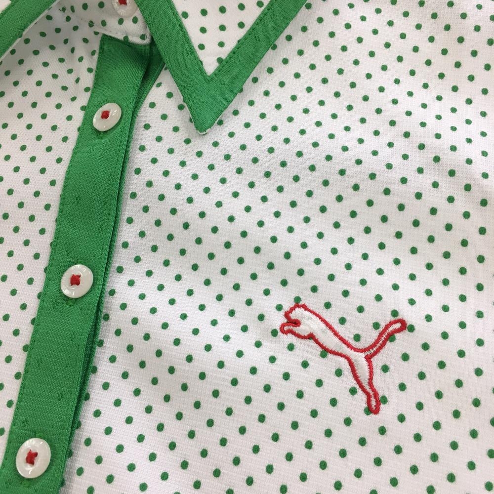 【超美品】プーマ 半袖ポロシャツ 白×グリーン ドット柄 ロゴ刺しゅう レディース M ゴルフウェア PUMA