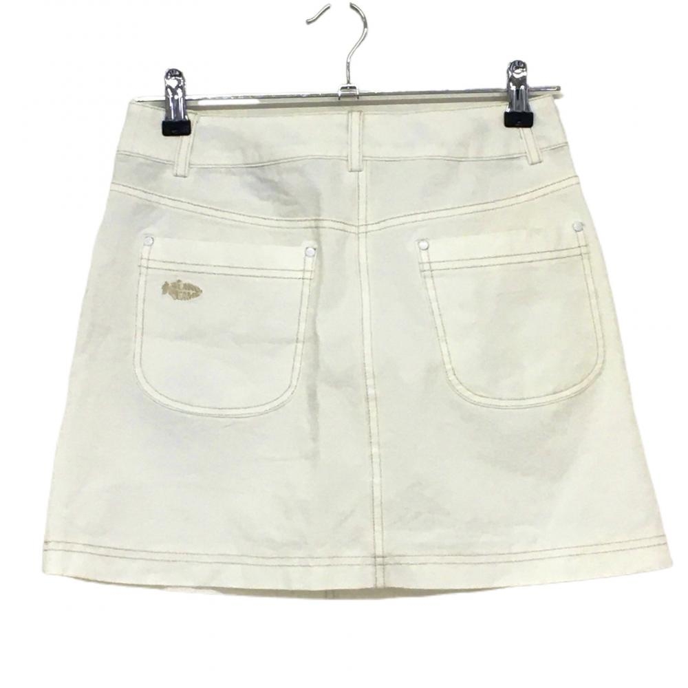【美品】キャロウェイ スカート 白 ステッチ ウエスト裏斜めストライプ レディース M ゴルフウェア Callaway