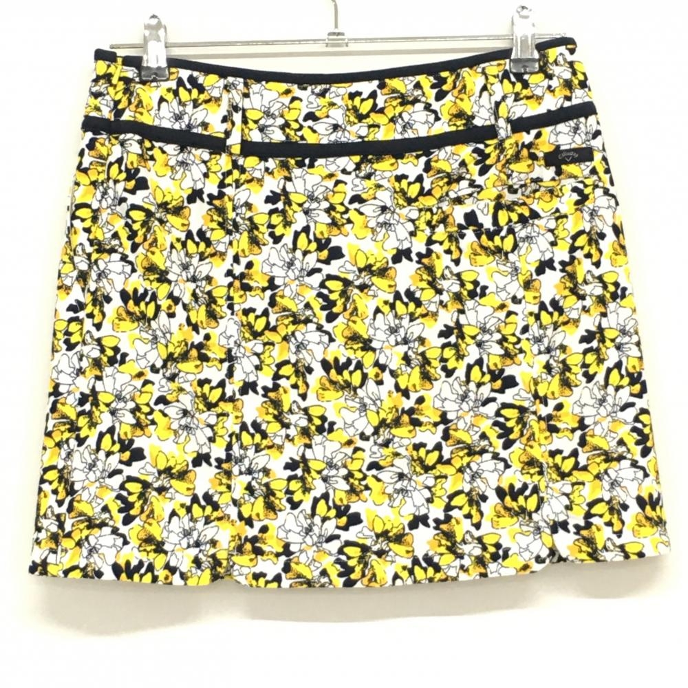 【超美品】キャロウェイ スカート 白×イエロー 花柄 裏地付き レディース M ゴルフウェア Callaway