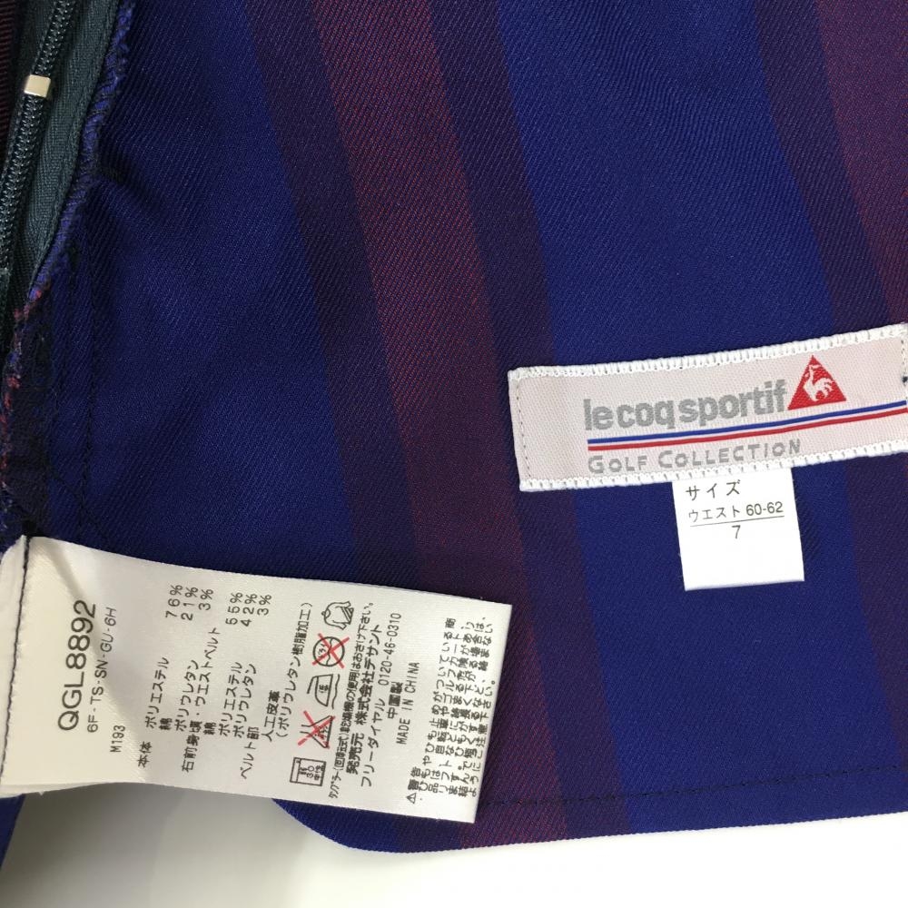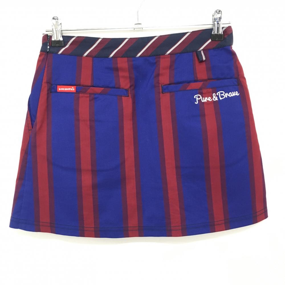 【美品】ルコック 巻きスカート ネイビー×ボルドー×ブルー ストライプ レディース 7(S) ゴルフウェア le coq sportif