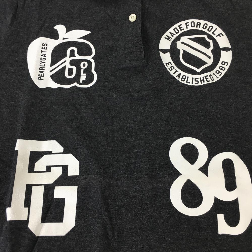 パーリーゲイツ 半袖ポロシャツ ダークグレー×白 リンゴプリント コットン100% レディース 1(M) ゴルフウェア PEARLY GATES