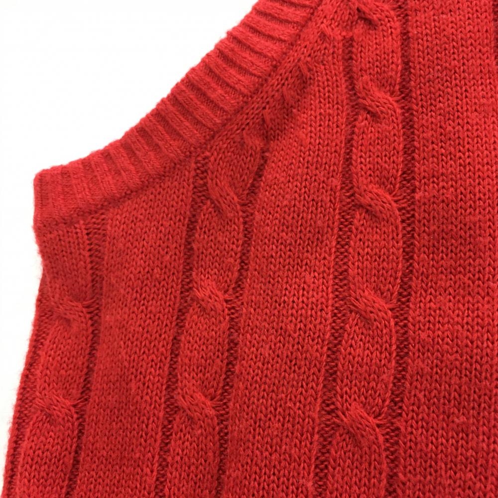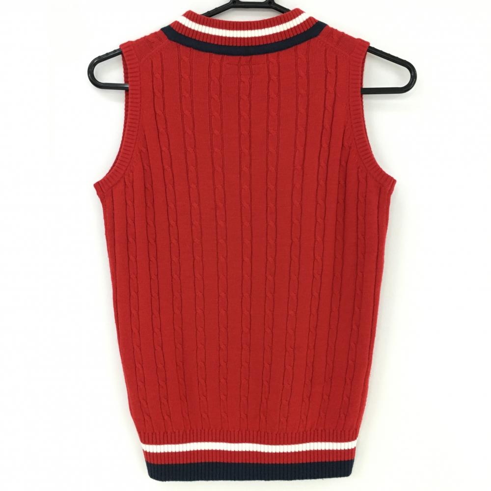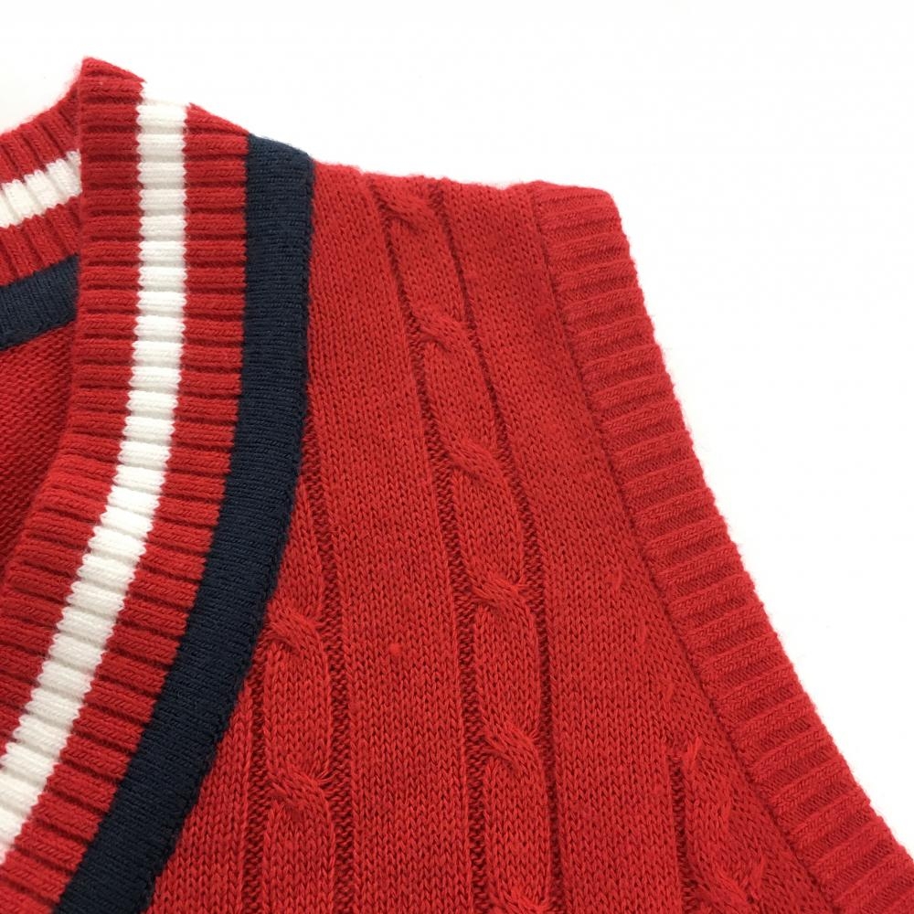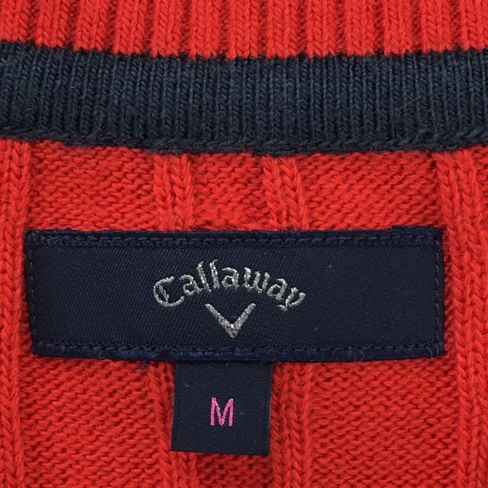 【美品】キャロウェイ ニットベスト レッド×ネイビー ケーブル編み Vネック ウール混 レディース M ゴルフウェア Callaway
