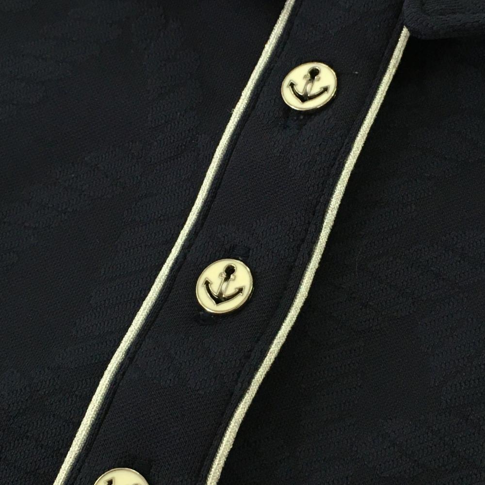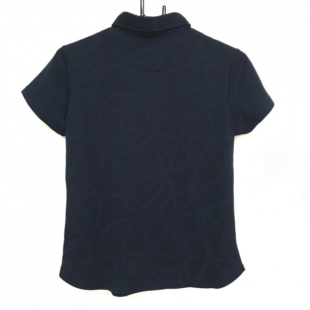 【超美品】キャロウェイ 半袖ポロシャツ ネイビー×白 ロープ柄 ラメ糸ロゴ レディース M ゴルフウェア Callaway