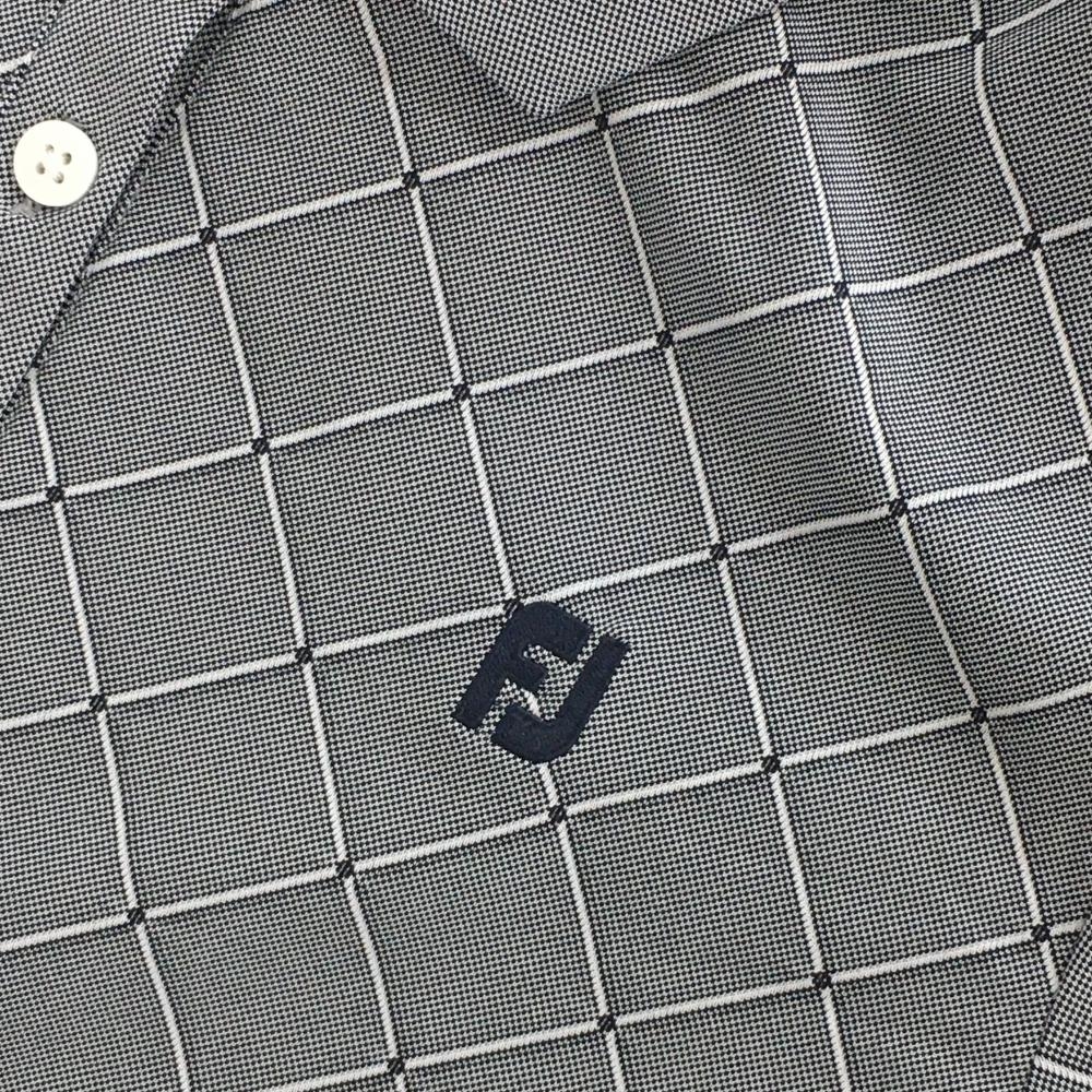 【超美品】フットジョイ 半袖ポロシャツ グレー系×白 チェック ロゴネイビー レディース S ゴルフウェア FootJoy