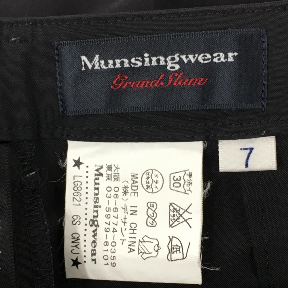 【美品】マンシングウェア 七分丈パンツ 黒×ベージュ 裾ボタン バックロゴ刺しゅう レディース 7(S) ゴルフウェア Munsingwear