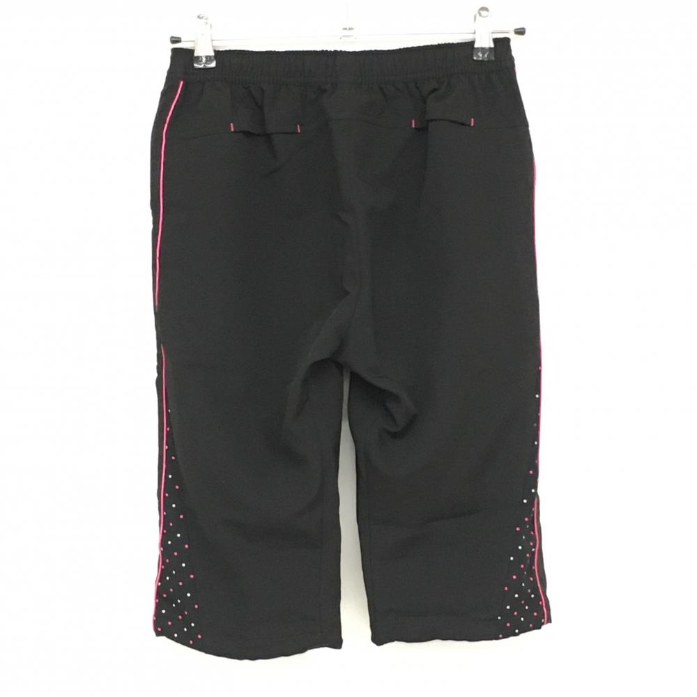 【超美品】ルコック 半端丈パンツ 黒×ピンク 一部ドット柄 ロゴ刺しゅう 裾ドローコード レディース S ゴルフウェア le coq sportif