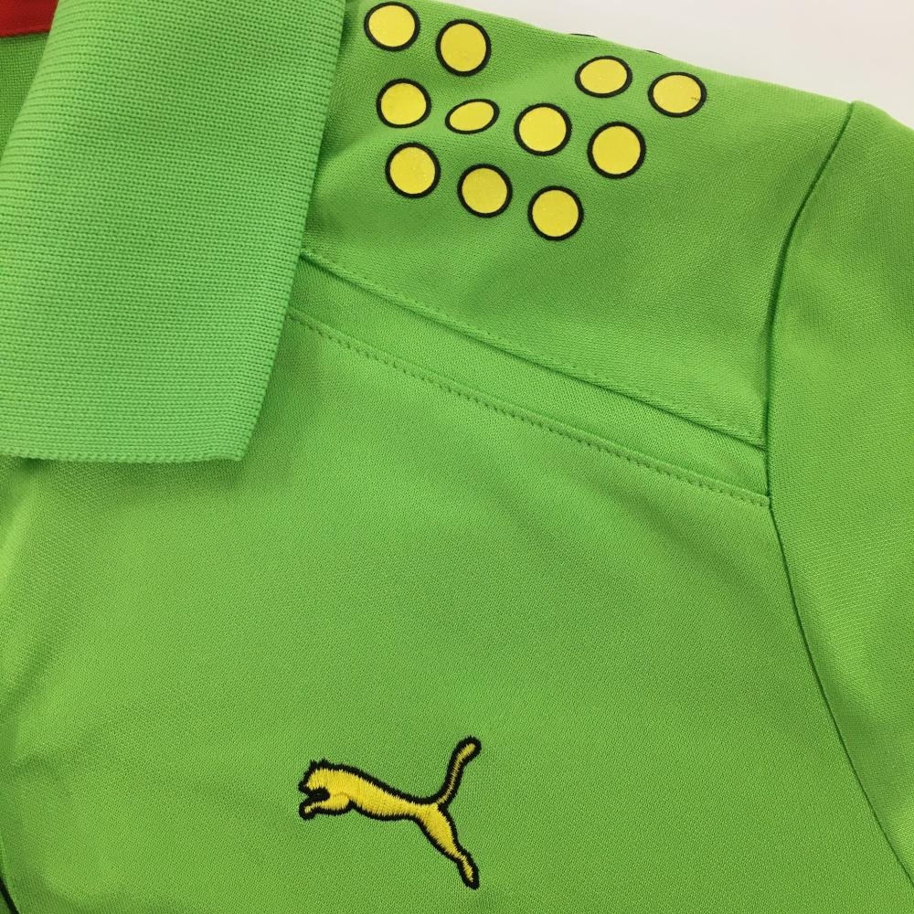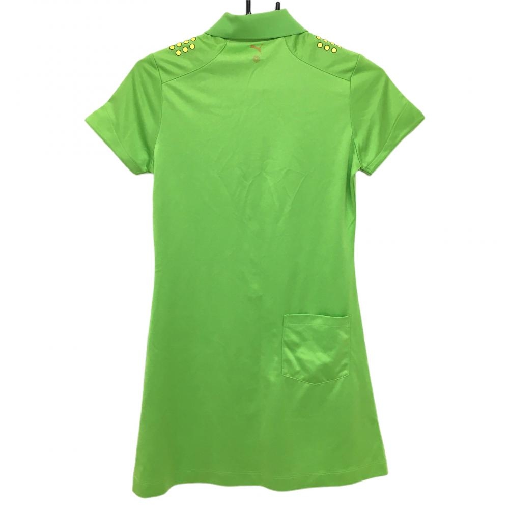 【新品】プーマ 半袖ポロワンピース ライトグリーン×イエロー 肩ドット レディース M ゴルフウェア PUMA