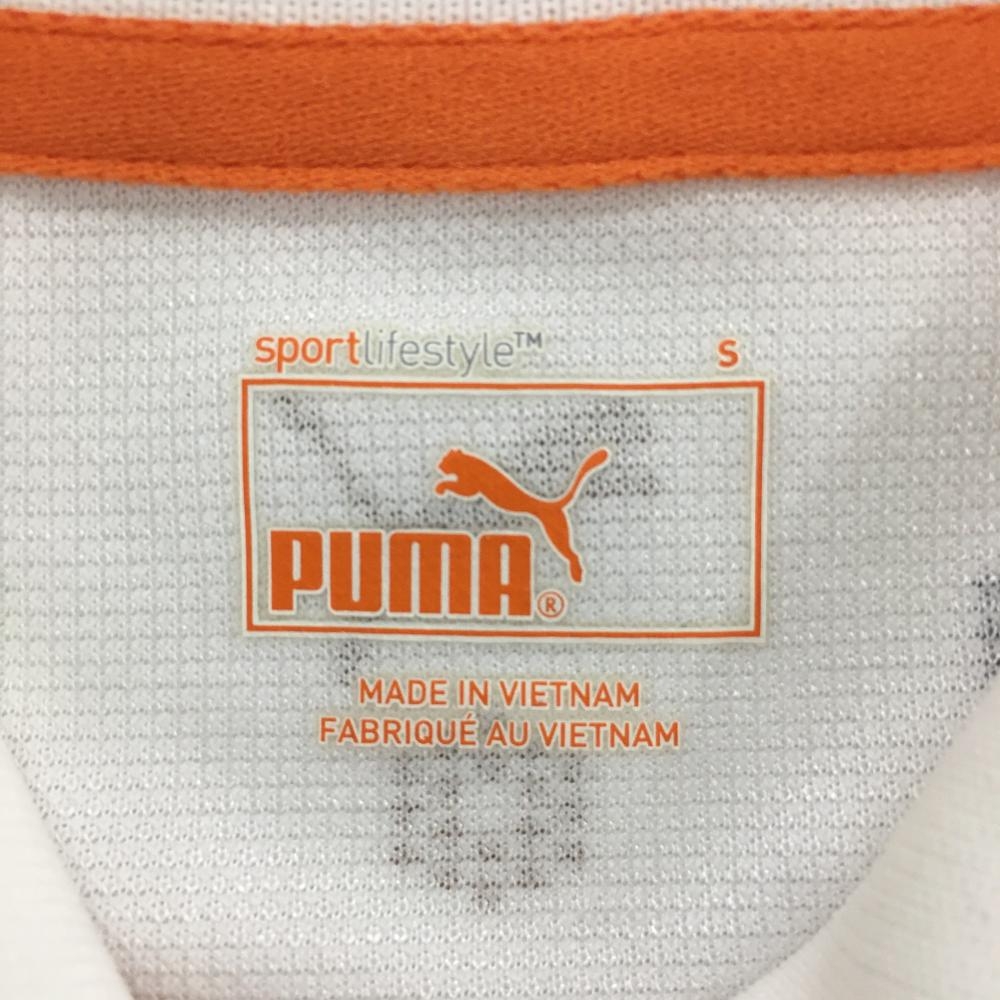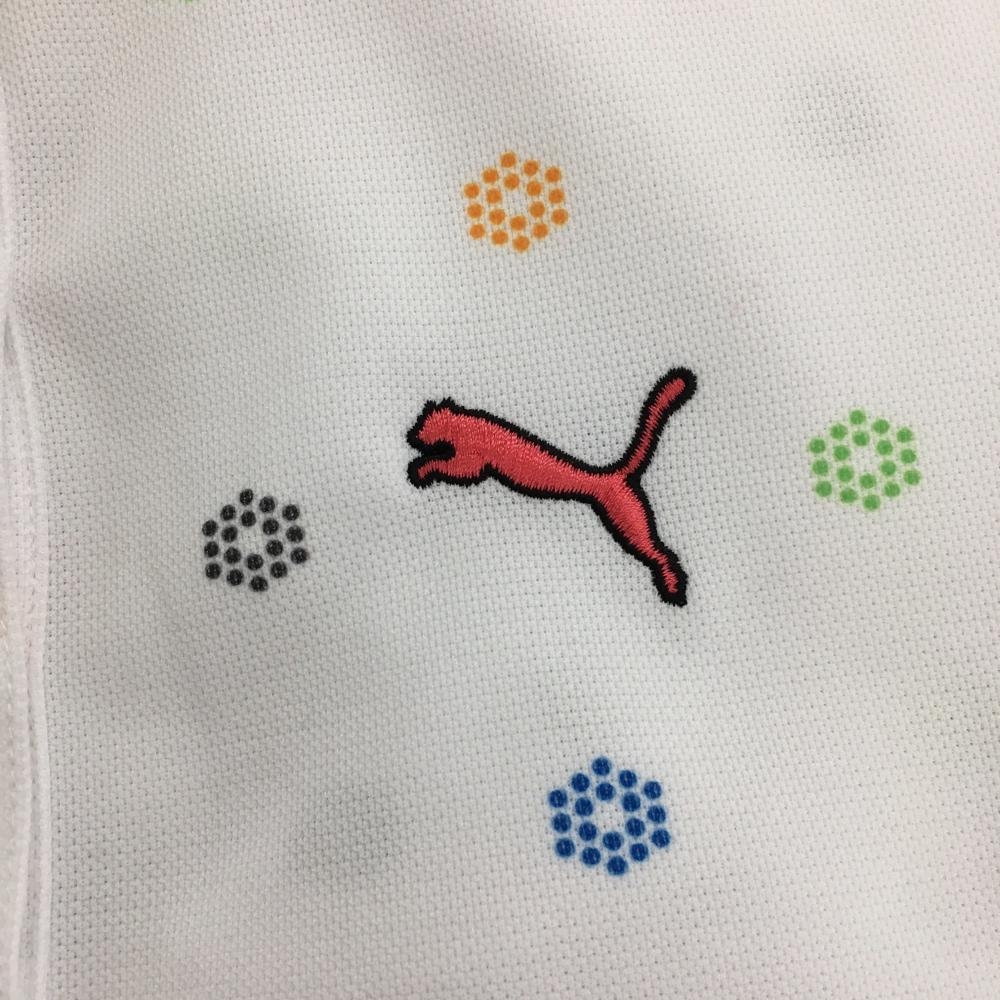 プーマ 半袖ポロシャツ 白×オレンジ 総柄 レディース S ゴルフウェア PUMA