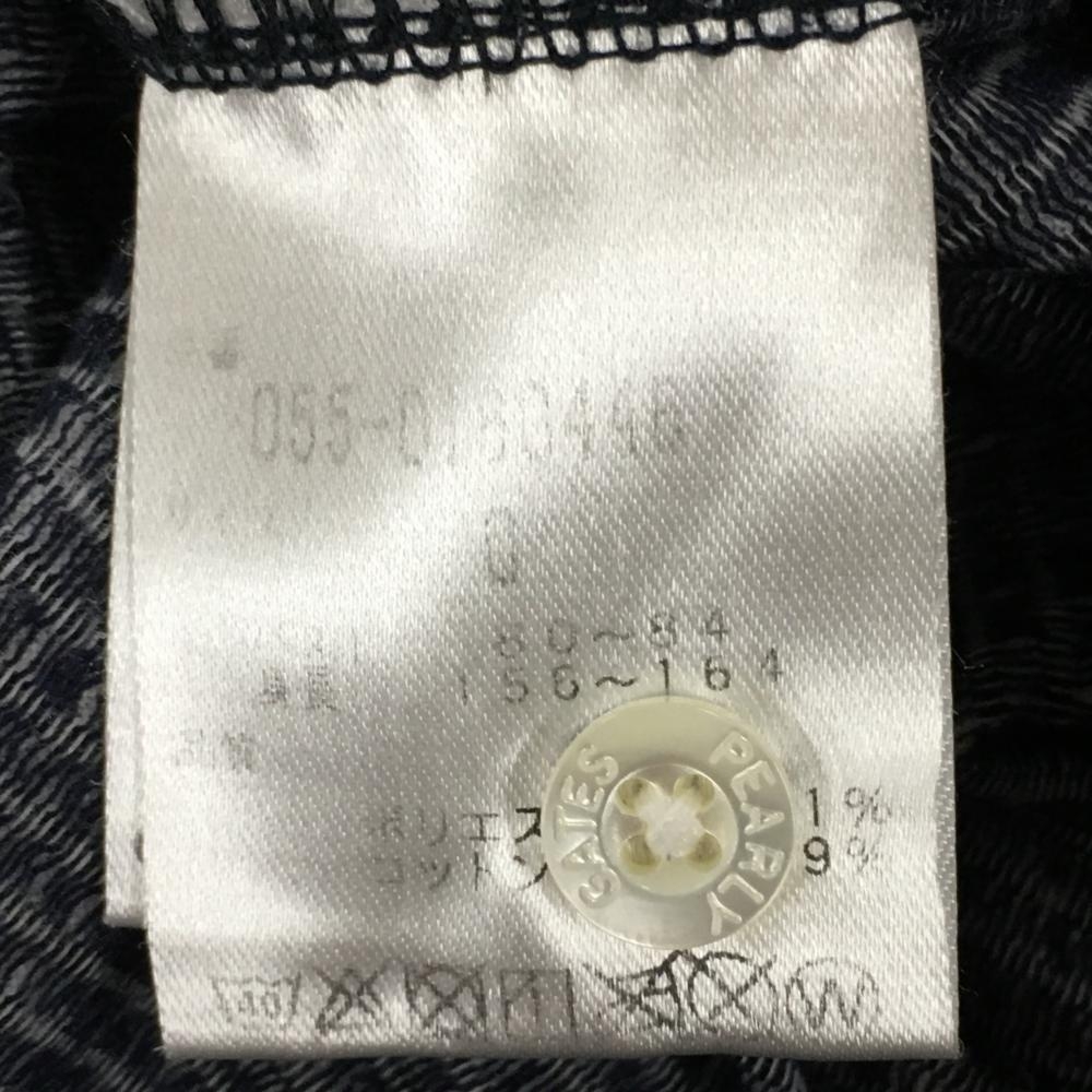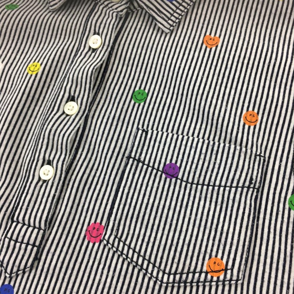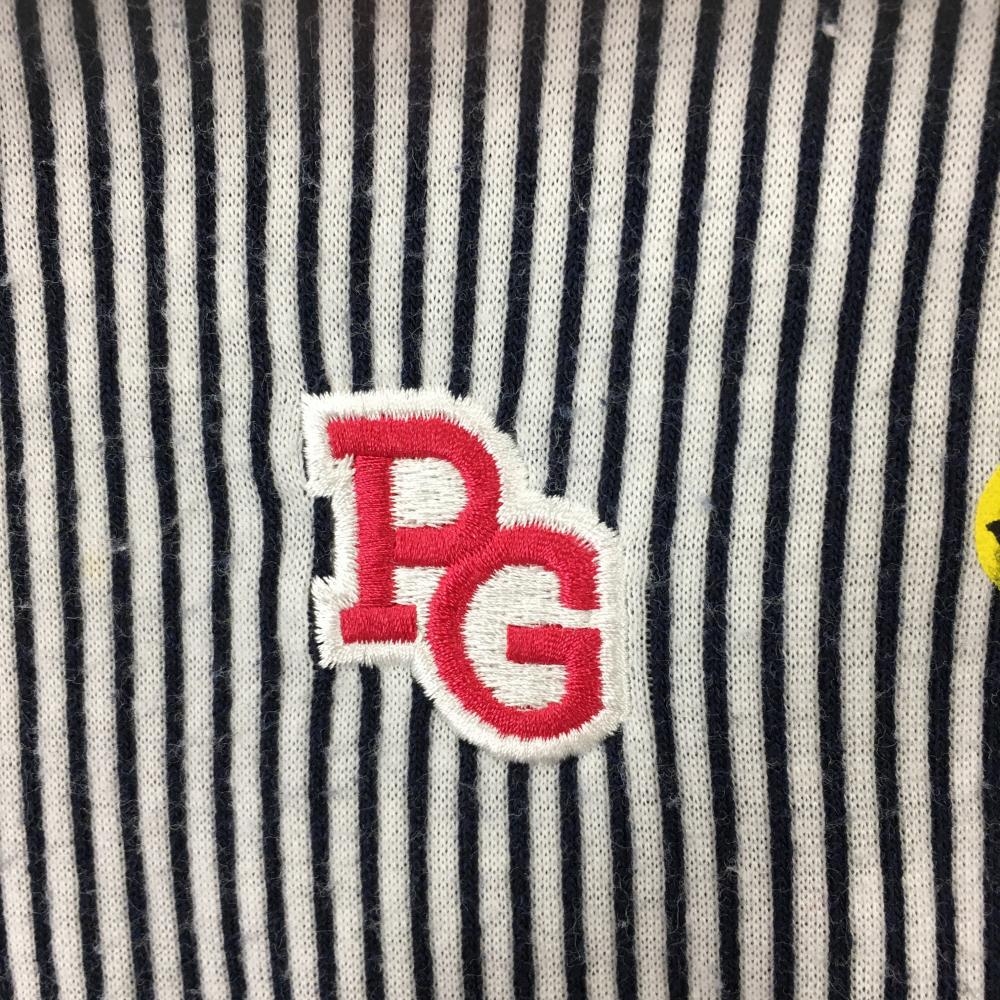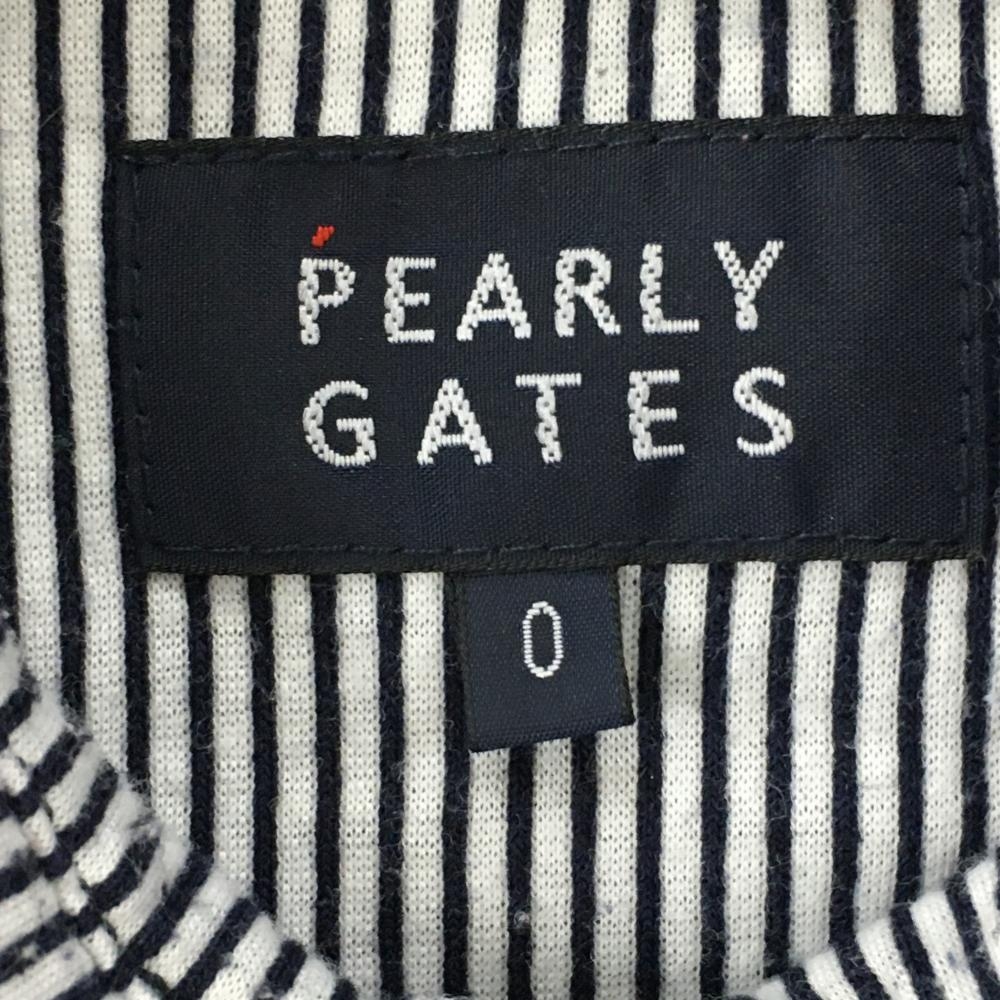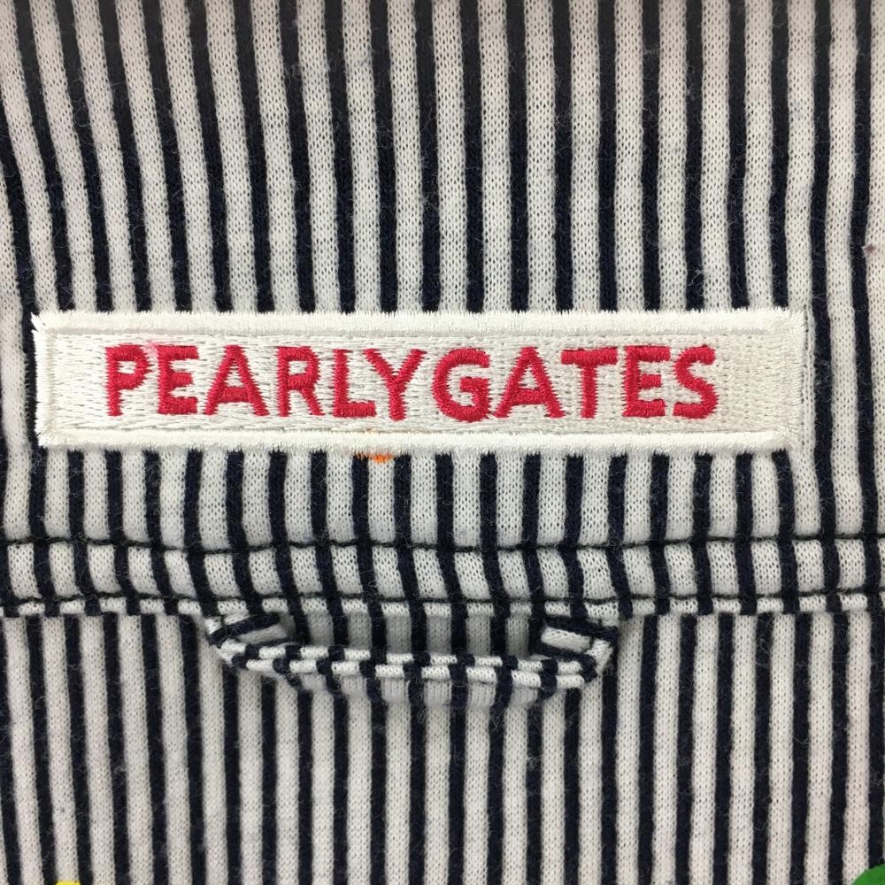 パーリーゲイツ 半袖ポロシャツ 白×ネイビー ストライプ×ニコちゃん スマイル 胸ポケット レディース 0(S) ゴルフウェア PEARLY GATES