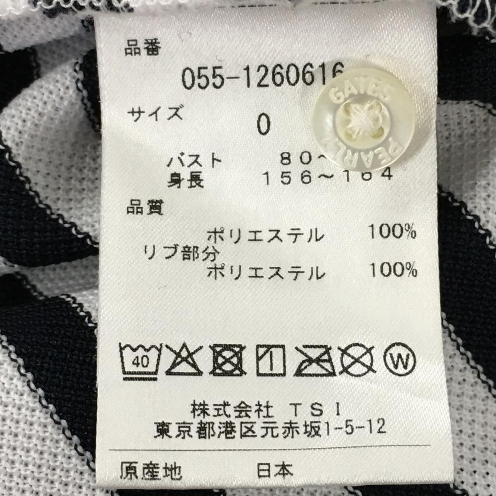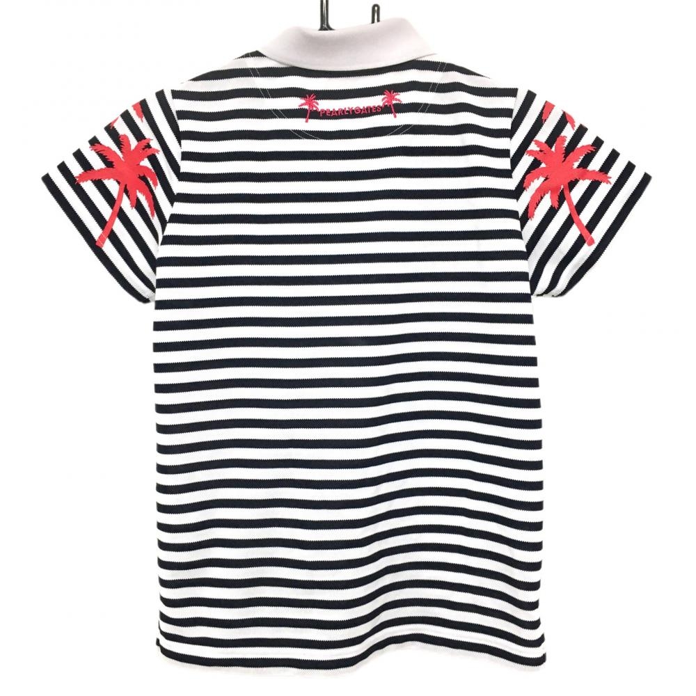 【超美品】パーリーゲイツ 半袖ポロシャツ 白×ダークネイビー ボーダー ヤシの木プリント レディース 0(S) ゴルフウェア PEARLY GATES