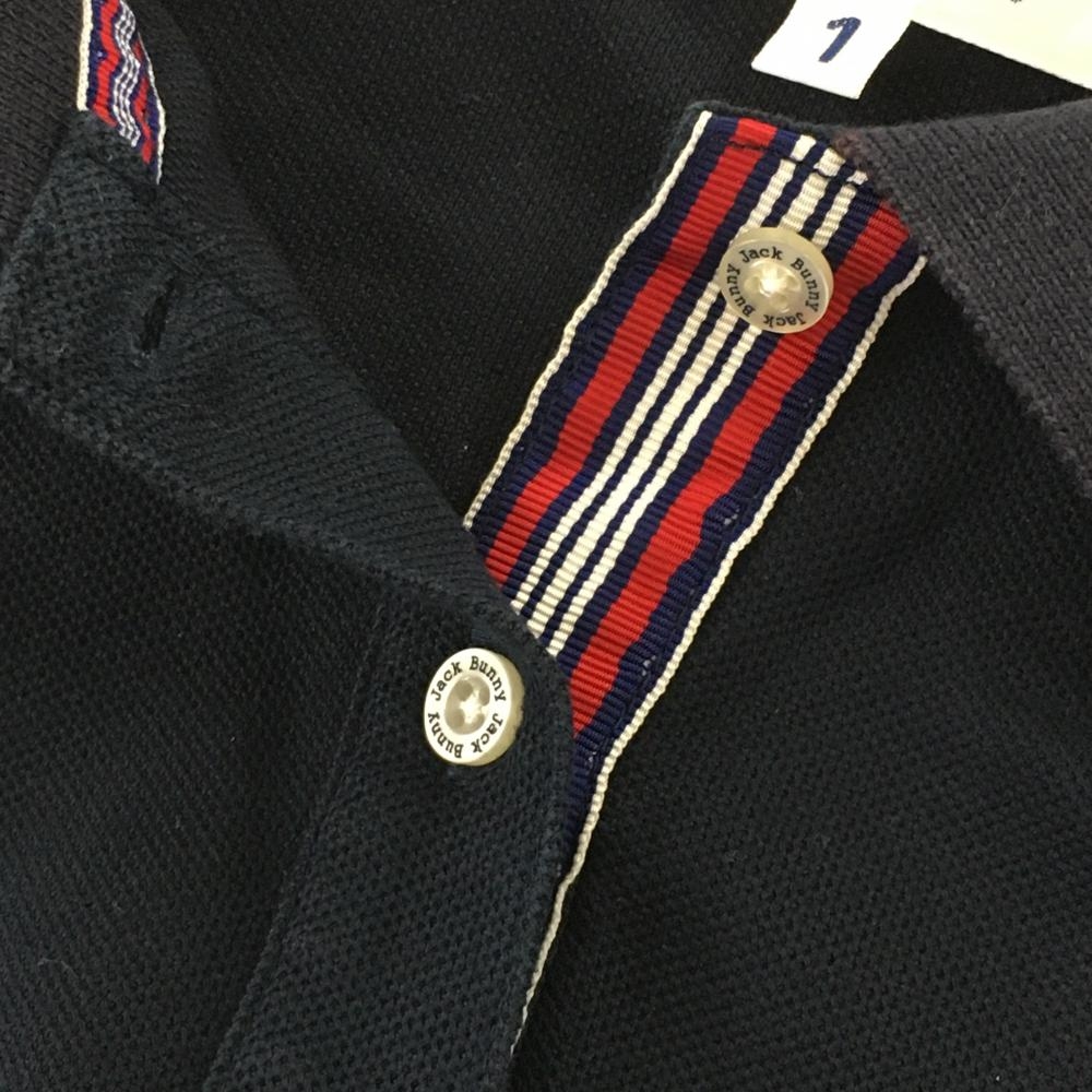ジャックバニー 半袖ポロシャツ ネイビー×白 前立て内側ストライプ レディース 1 ゴルフウェア Jack Bunny