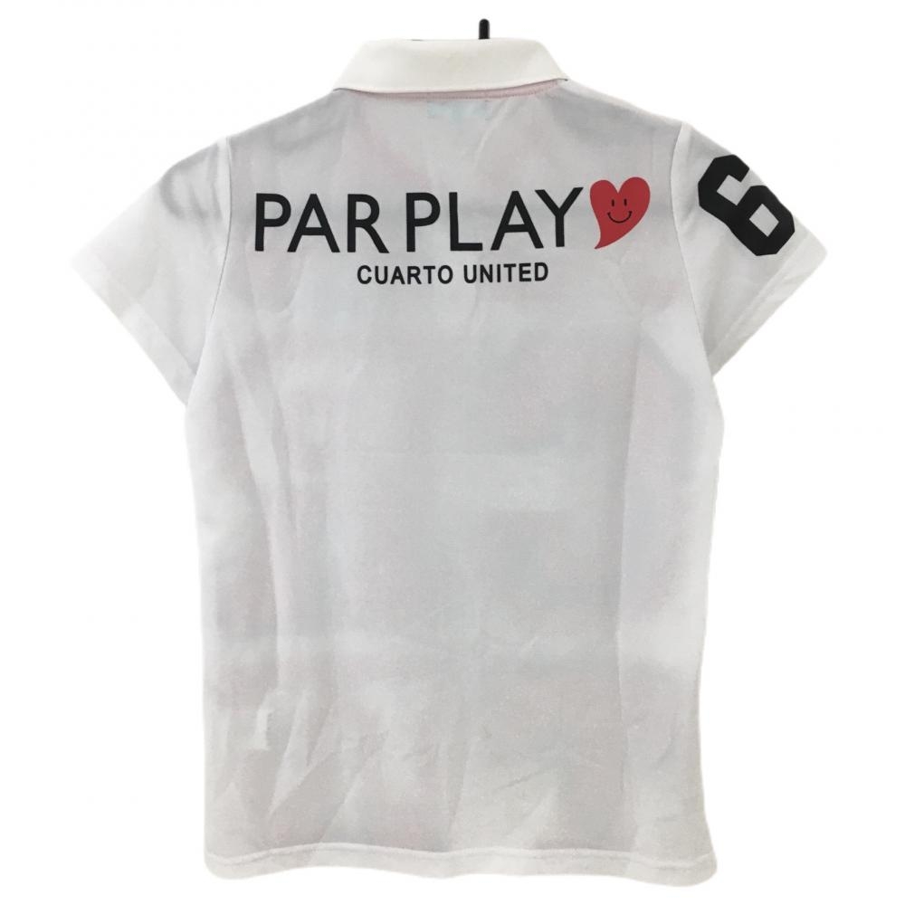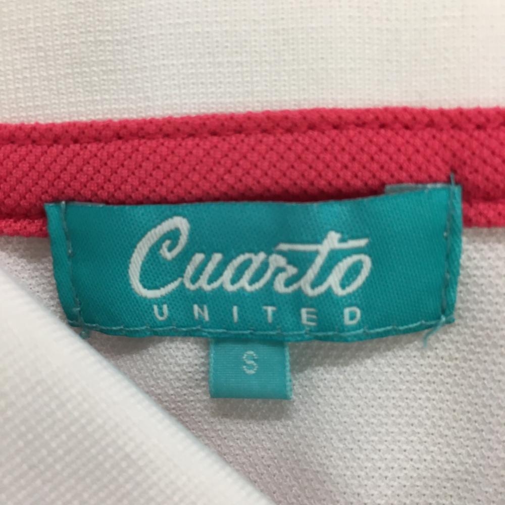 クアルトユナイテッド 半袖ポロシャツ 白×ピンク フロントビックプリント レディース S ゴルフウェア CUARTO UNITED