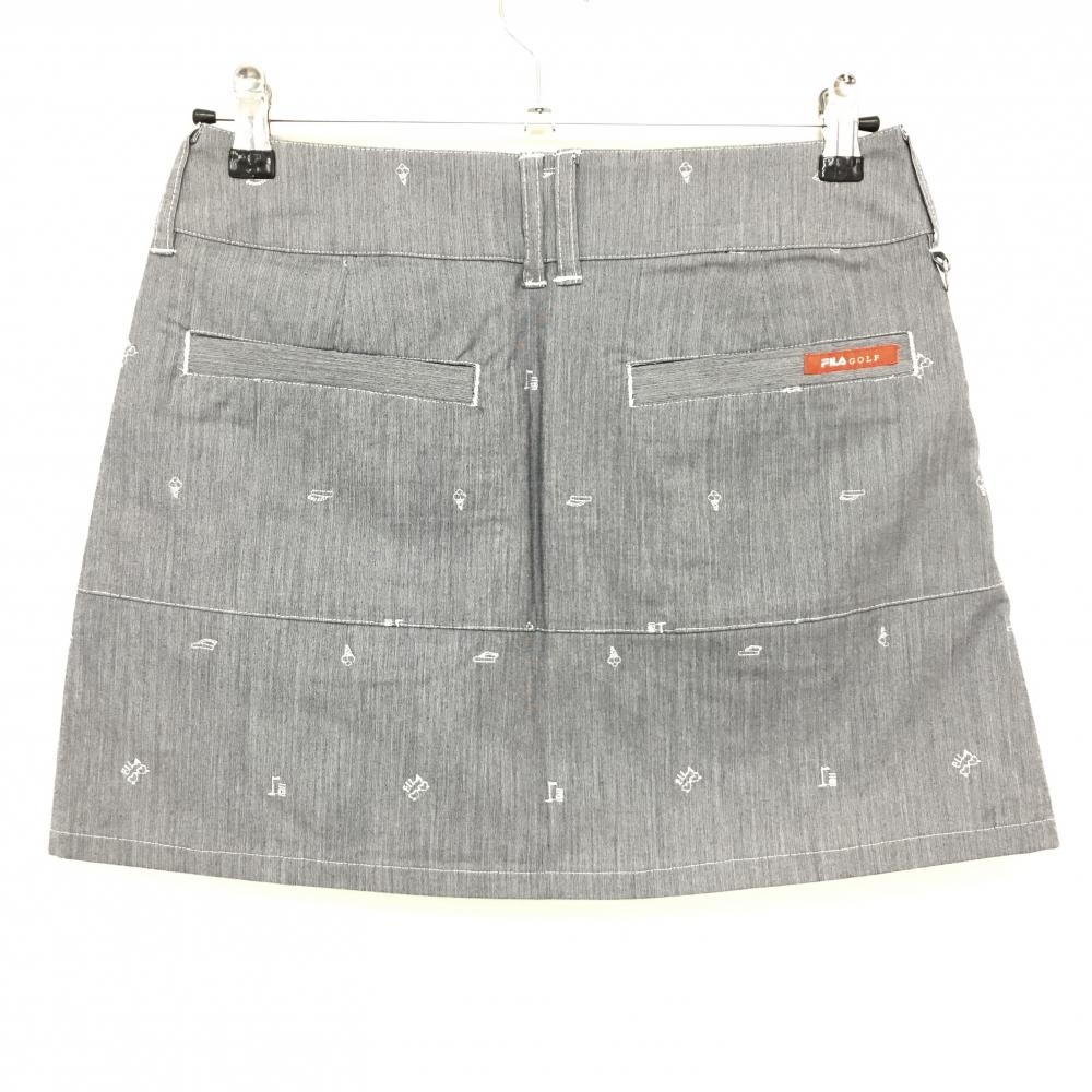 【超美品】フィラゴルフ スカート ネイビー×白 刺しゅう総柄 裾プリーツ レディース M ゴルフウェア FILA GOLF