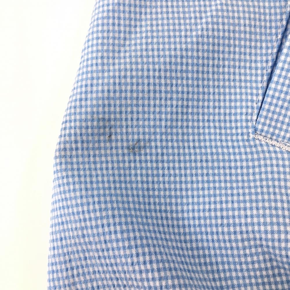 【超美品】ルコック ジャケットブルゾン ライトブルー×白 チェック ロゴ刺しゅう レディース M ゴルフウェア le coq sportif