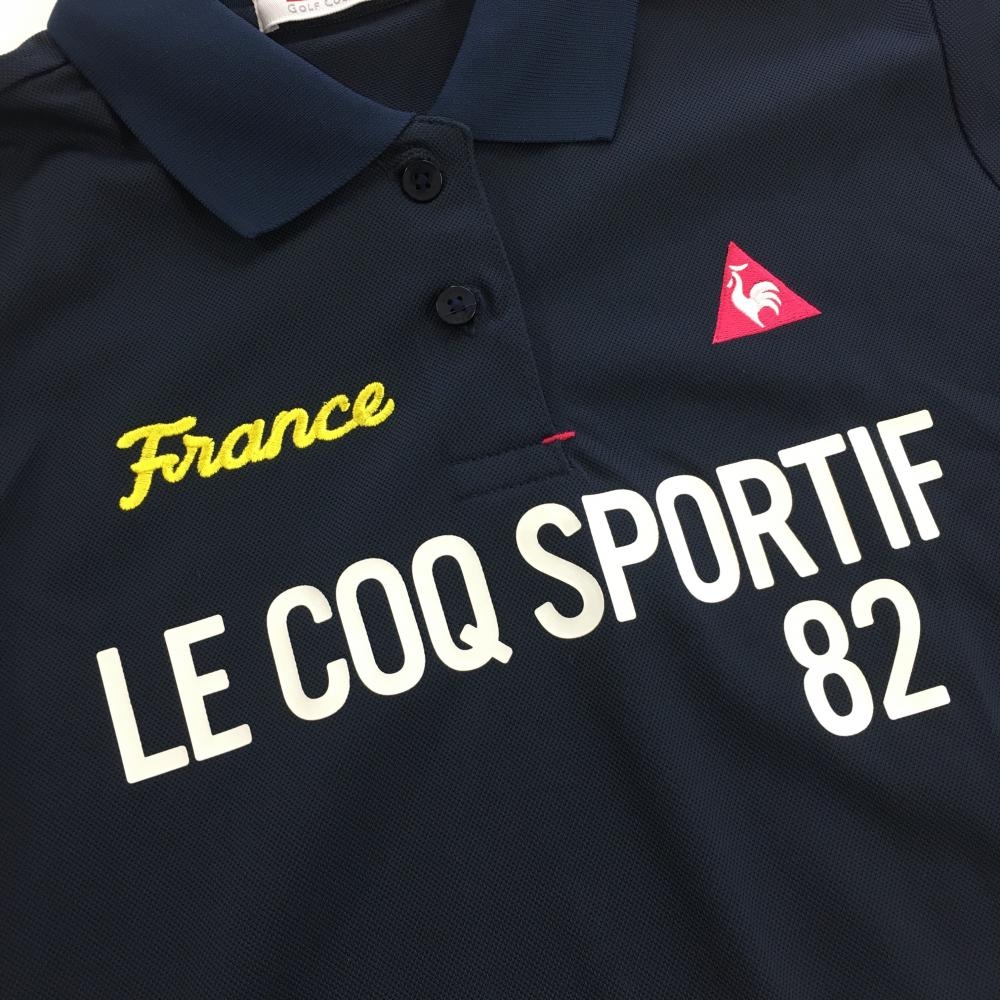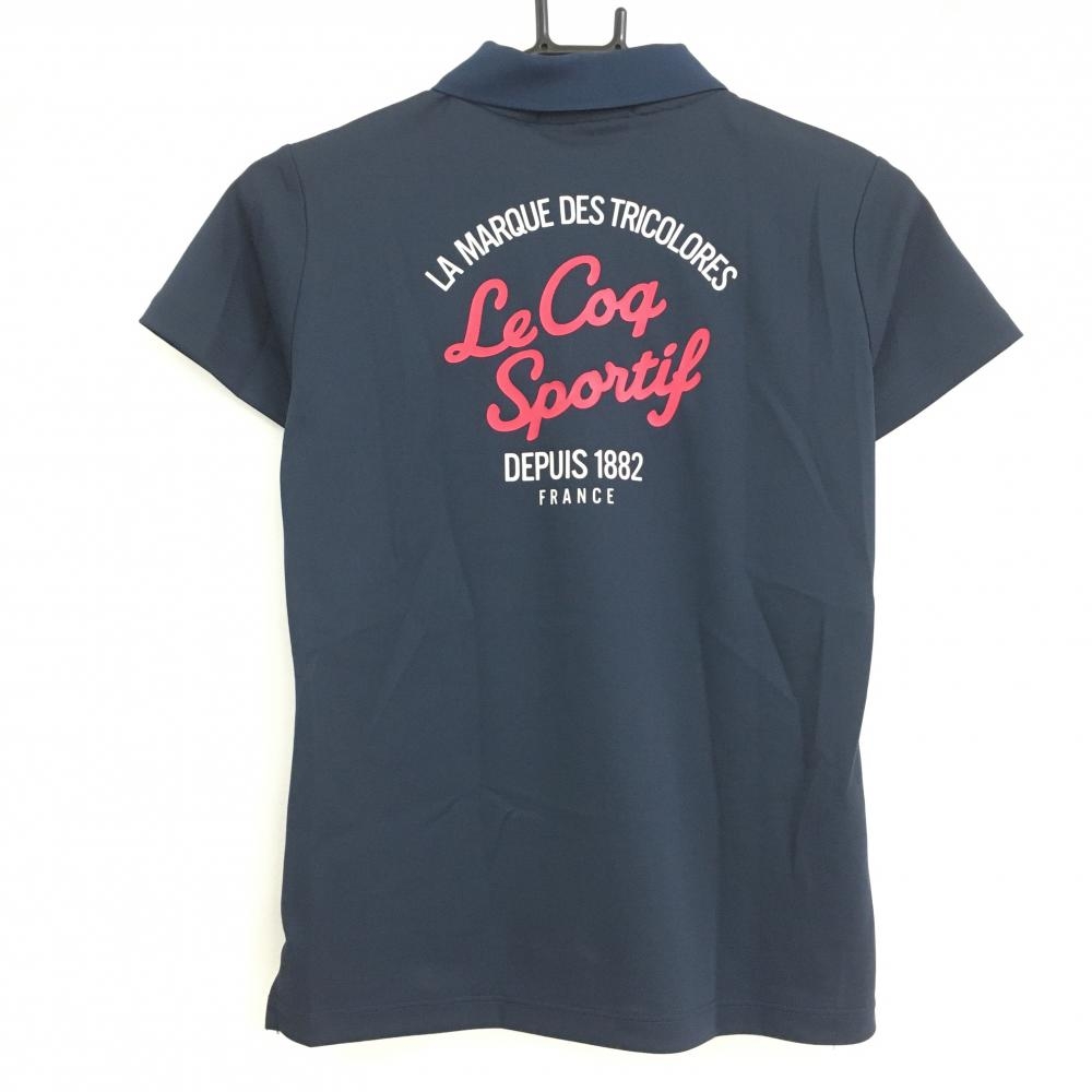 【超美品】ルコック 半袖ポロシャツ ネイビー フロントロゴプリント レディース M ゴルフウェア le coq sportif