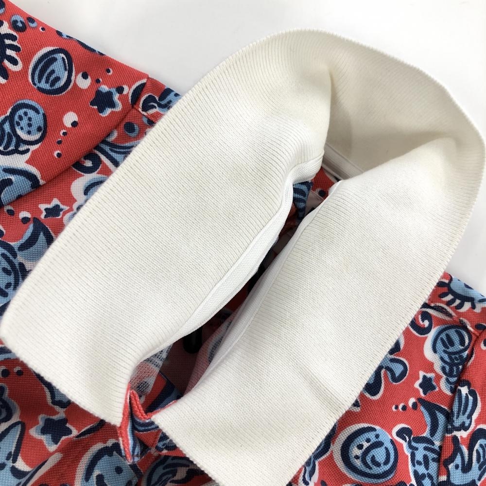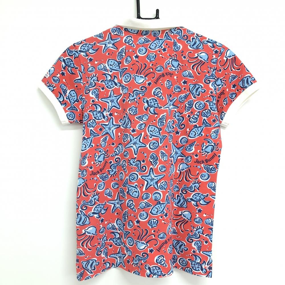ジャックバニー 半袖ポロシャツ レッド×ライトブルー 総柄 魚 貝 レディース 1(M) ゴルフウェア Jack Bunny