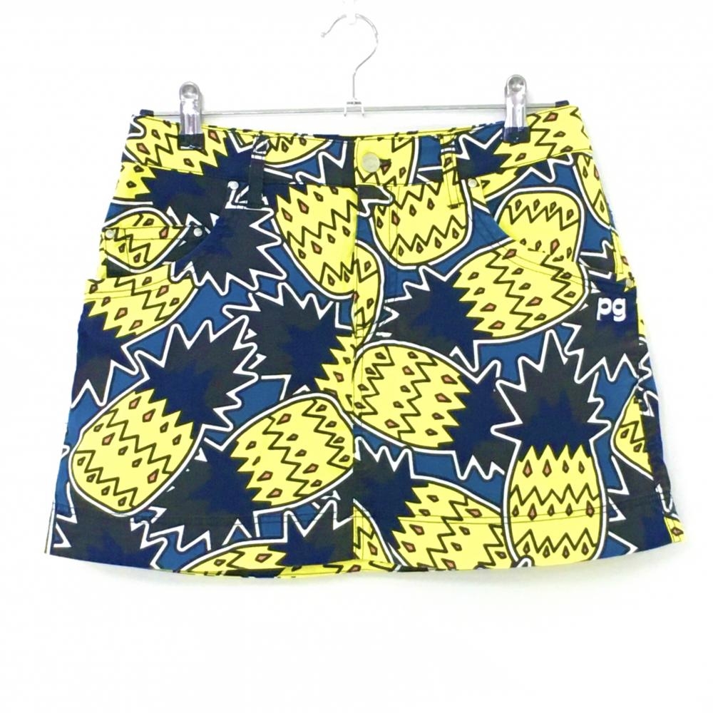 パーリーゲイツ スカート イエロー×黒 パイナップル柄 レディース 1(M) ゴルフウェア PEARLY GATES