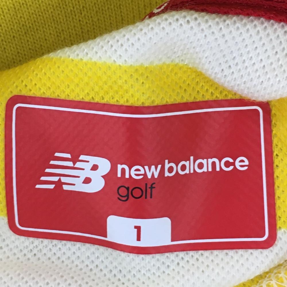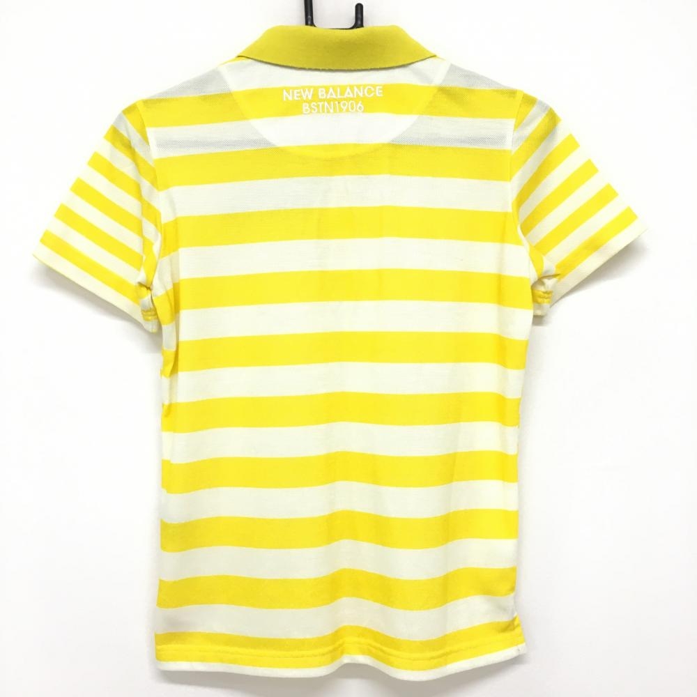 【美品】ニューバランスゴルフ 半袖ポロシャツ イエロー×アイボリー ボーダー柄 レディース 1(M) ゴルフウェア New Balance